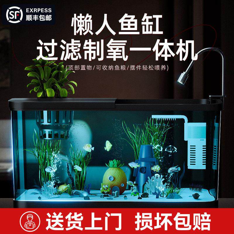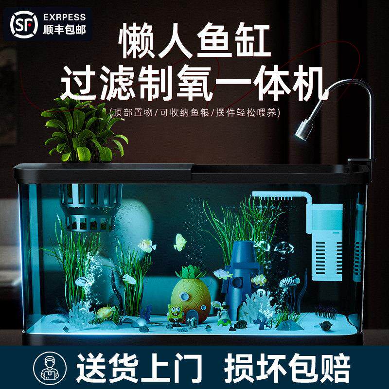 鱼缸过滤制氧新款小型客厅生态造景全套压克力金鱼海缸