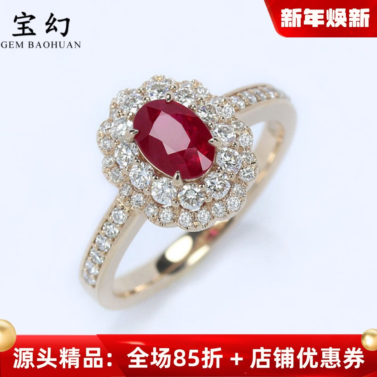 G18K玫瑰金缅甸天然鸽血红宝石蕾丝戒指 1克拉满镶钻石女款奢华