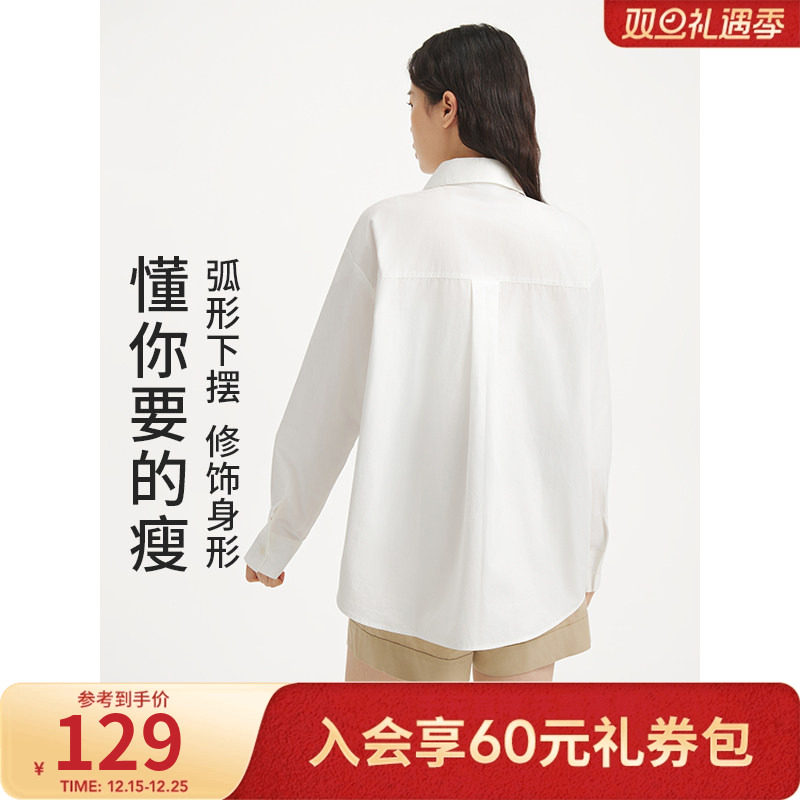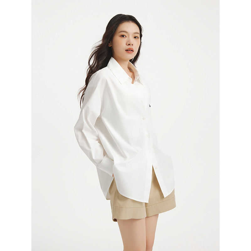 热风2025年秋季新款女士休闲刺绣纯棉衬衫挺括简约干净利落