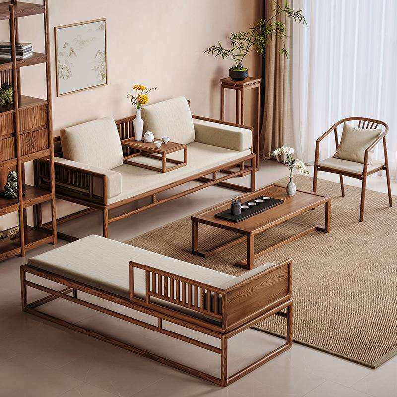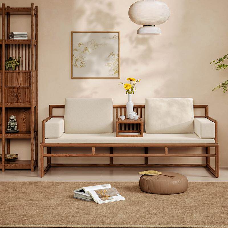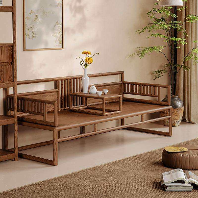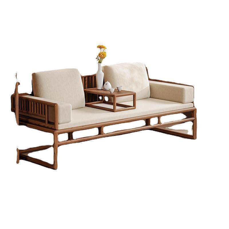 严选新中式全实木罗汉床茶桌椅组沙发床两用客厅家用胡桃色沙发桌