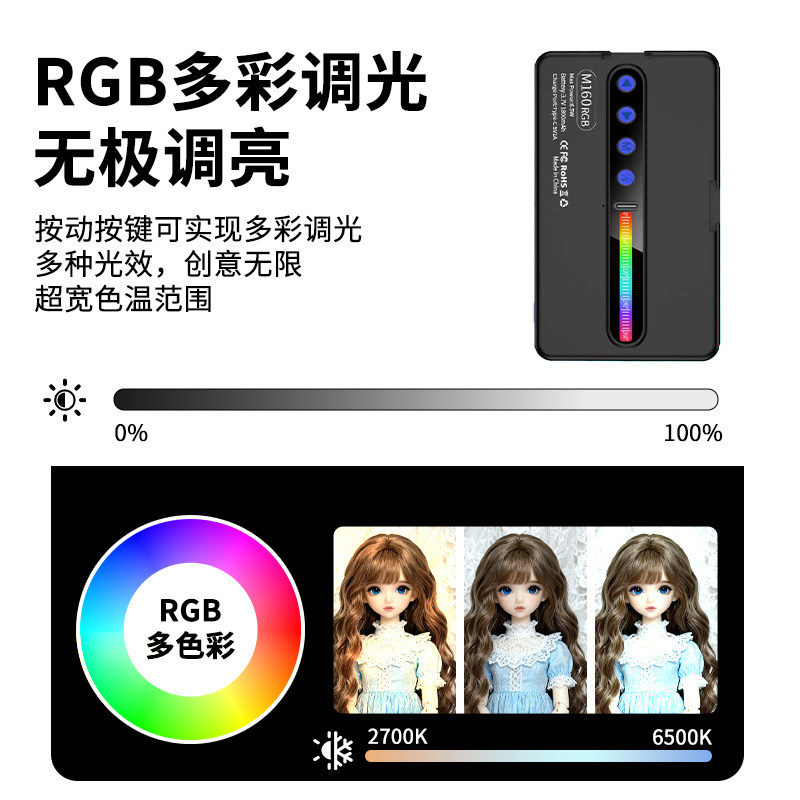 BJD拍摄补光灯便携式口袋灯拍娃神器RGB全彩拍照摄影豆腐夹手机专业室内打光灯桌面led轮廓灯美颜嫩肤自拍