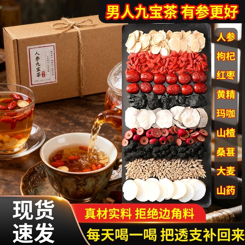 人参九宝茶枸杞杜仲雄花十宝男士滋补玛咖肾强养生五宝持久八宝茶