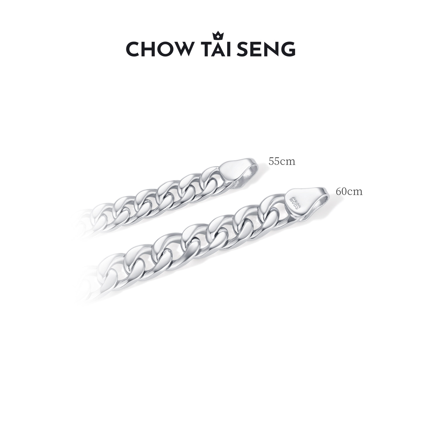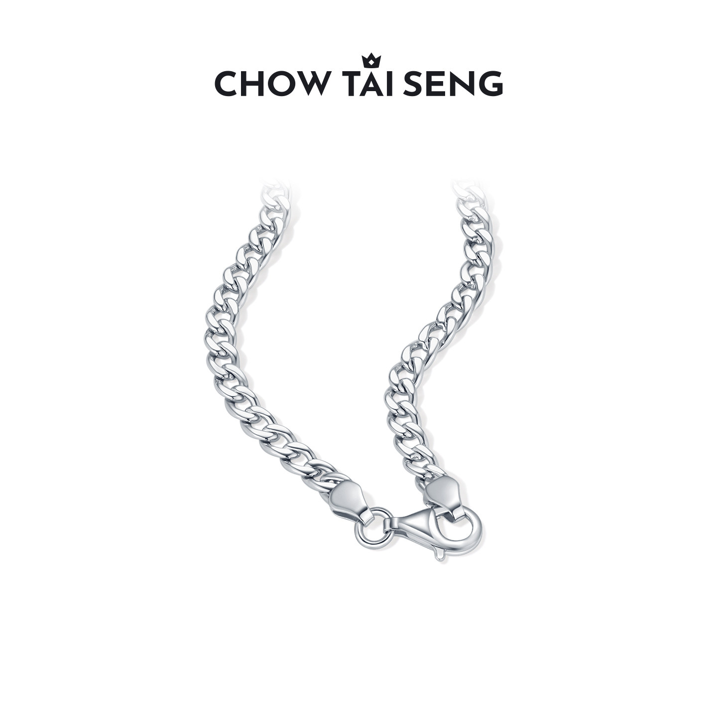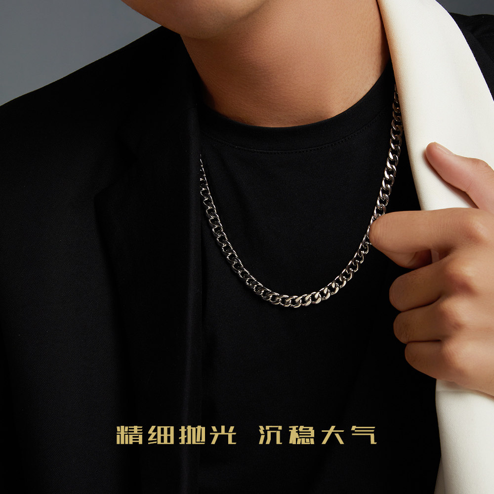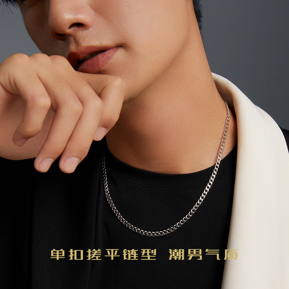 周大生S925小众纯银项链男士潮素链简约秋冬毛衣链生日礼物送男友