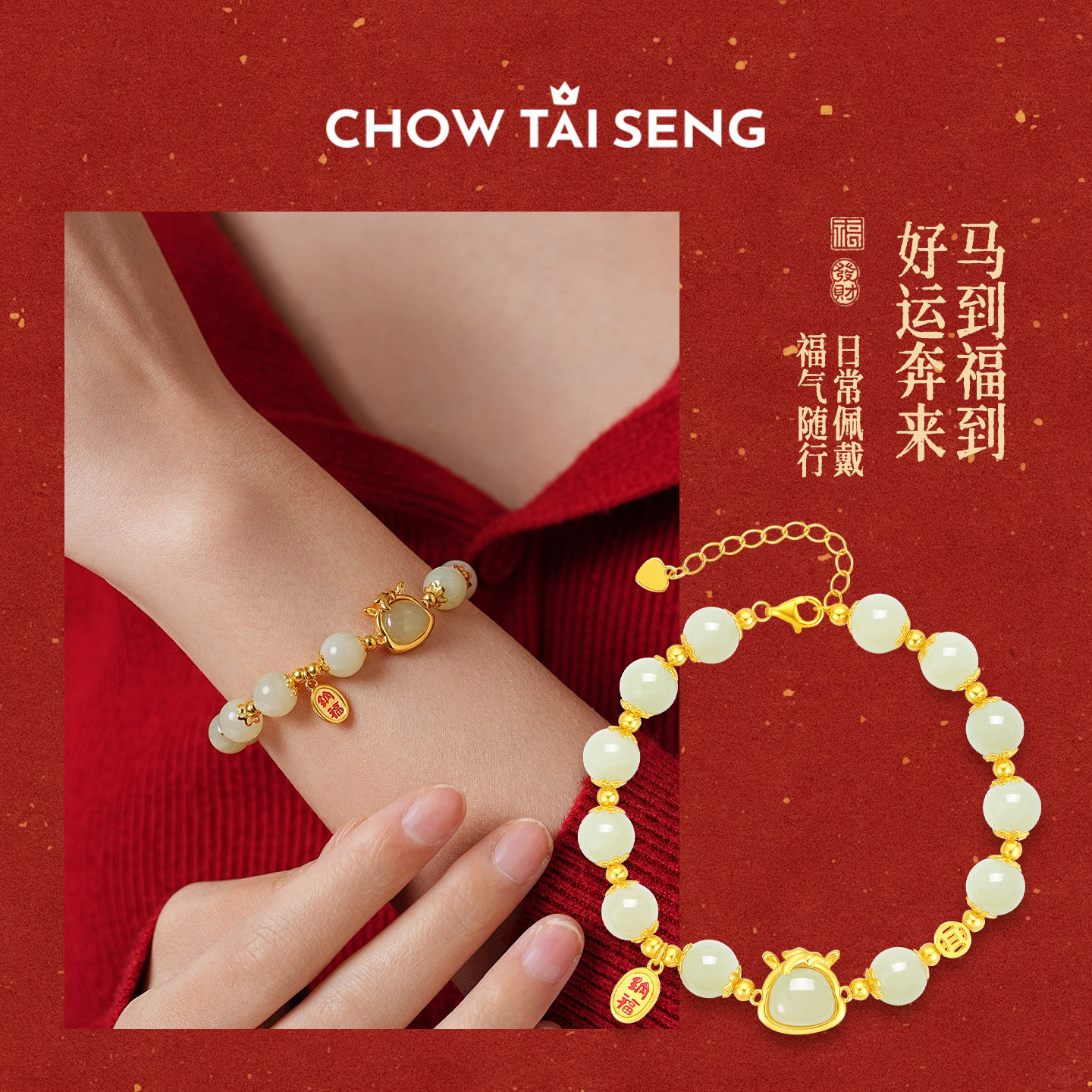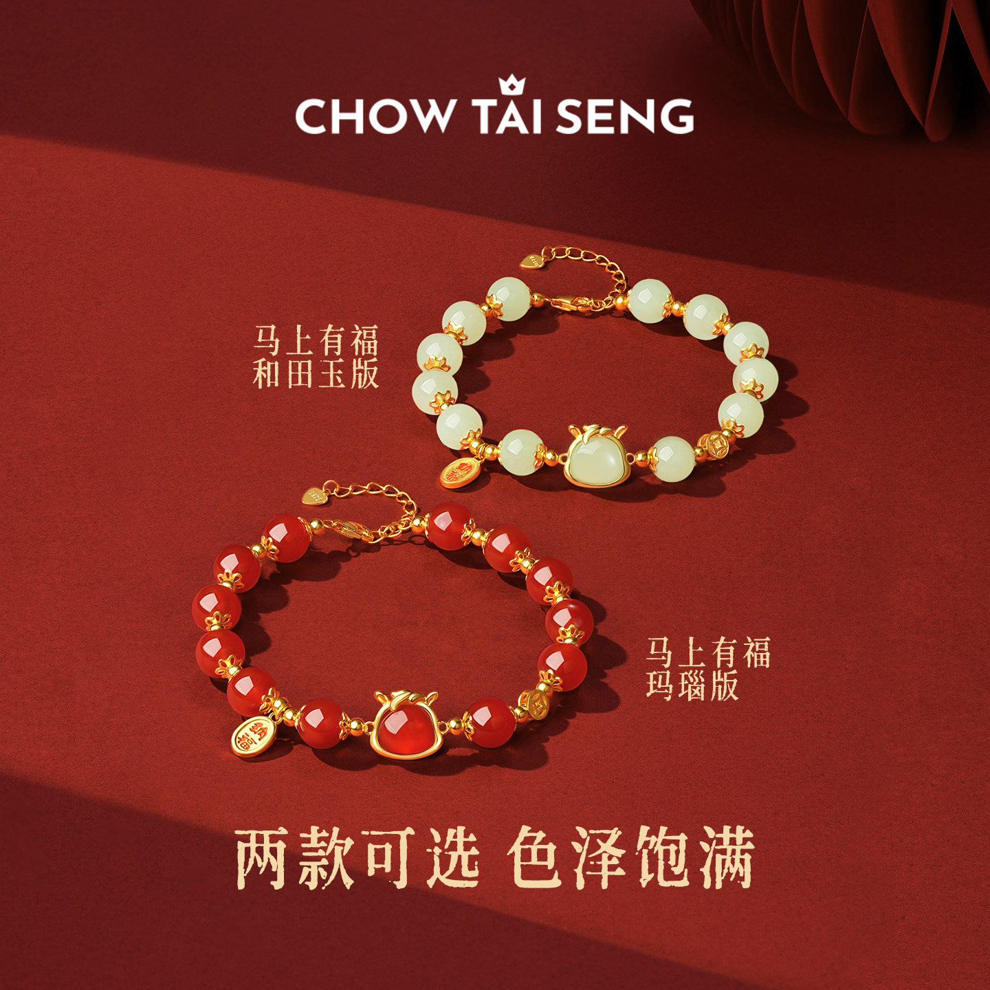 周大生生肖马红玛瑙手串女925银和田玉手链手饰本命年送女友礼物