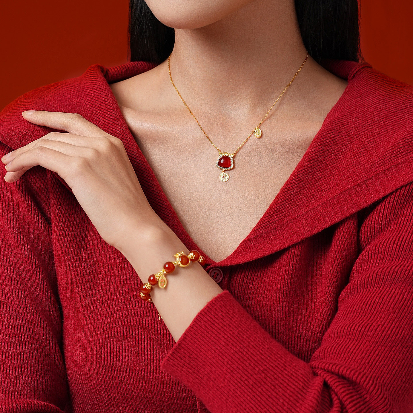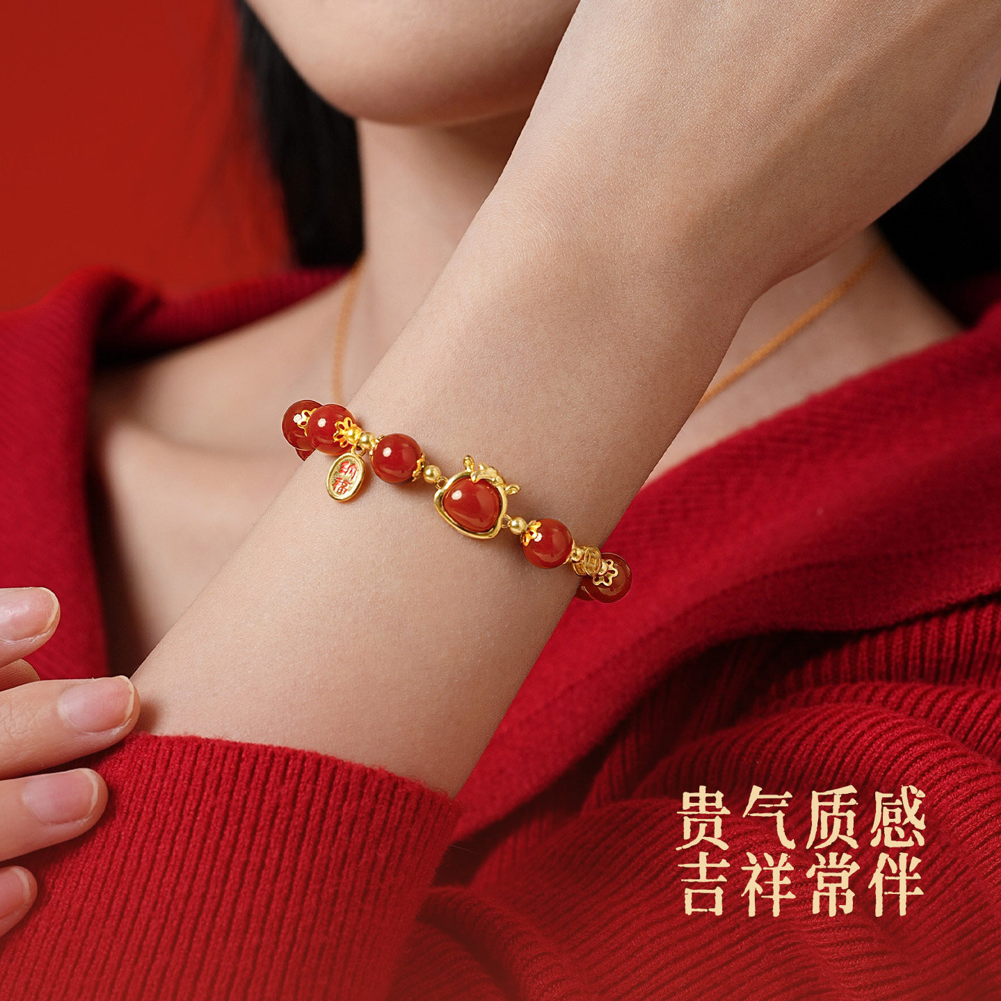 周大生好柿花生红玛瑙手串纯银国风设计感手链女本命年礼物送女友
