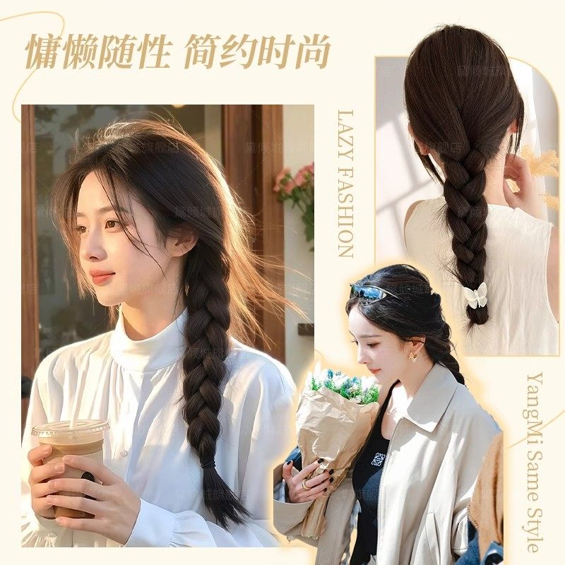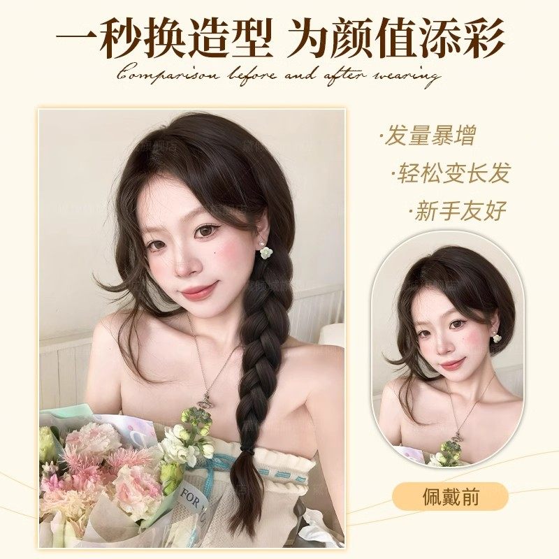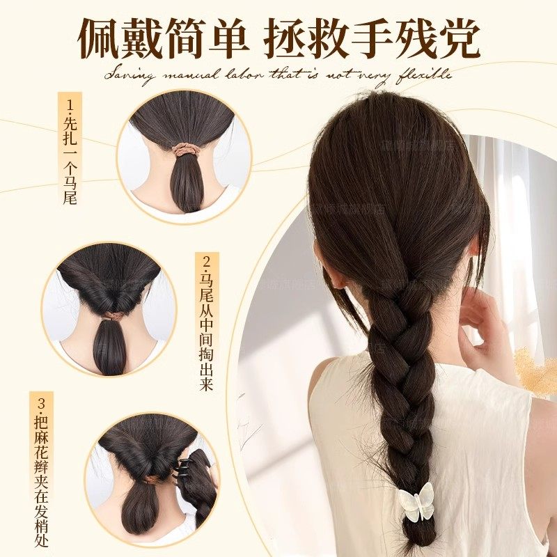 假发辫子女低扎马尾抓夹麻花长辫子扎发神器新中式假发辫马尾长发