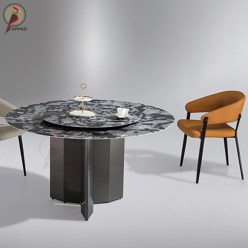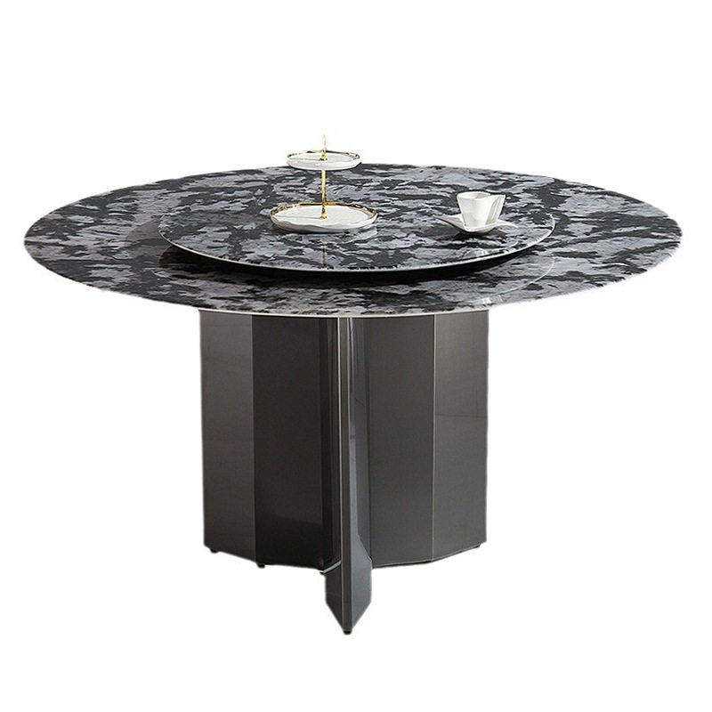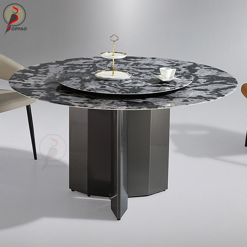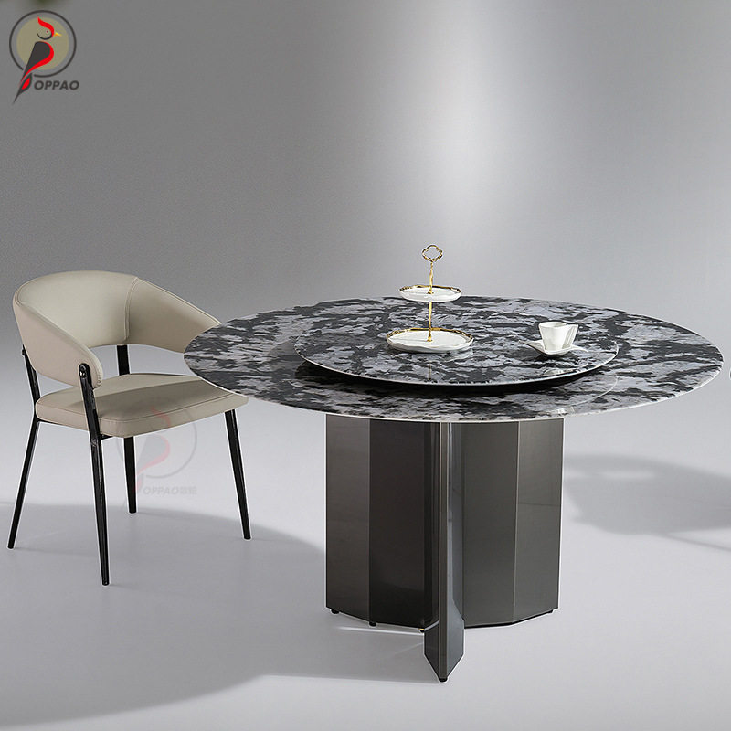 现代轻奢微晶石餐桌圆桌带转盘简约岩板圆形餐桌超晶石餐桌椅组合