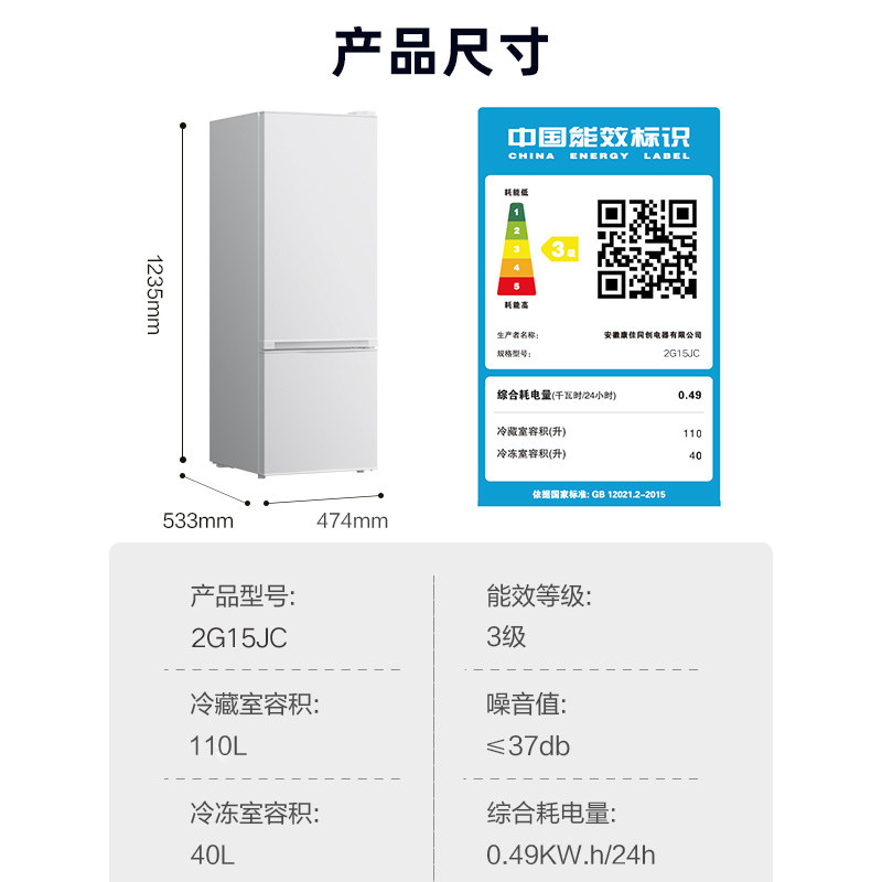 【一级能效】小冰箱家用小型出租房宿舍单人用迷你双门节能电冰箱