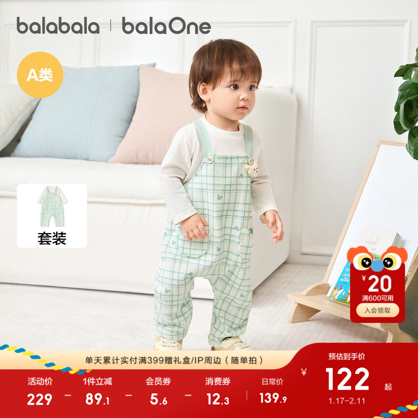 【balaOne】巴拉巴拉童装宝宝套装2026新款春装背带裤两件套时尚