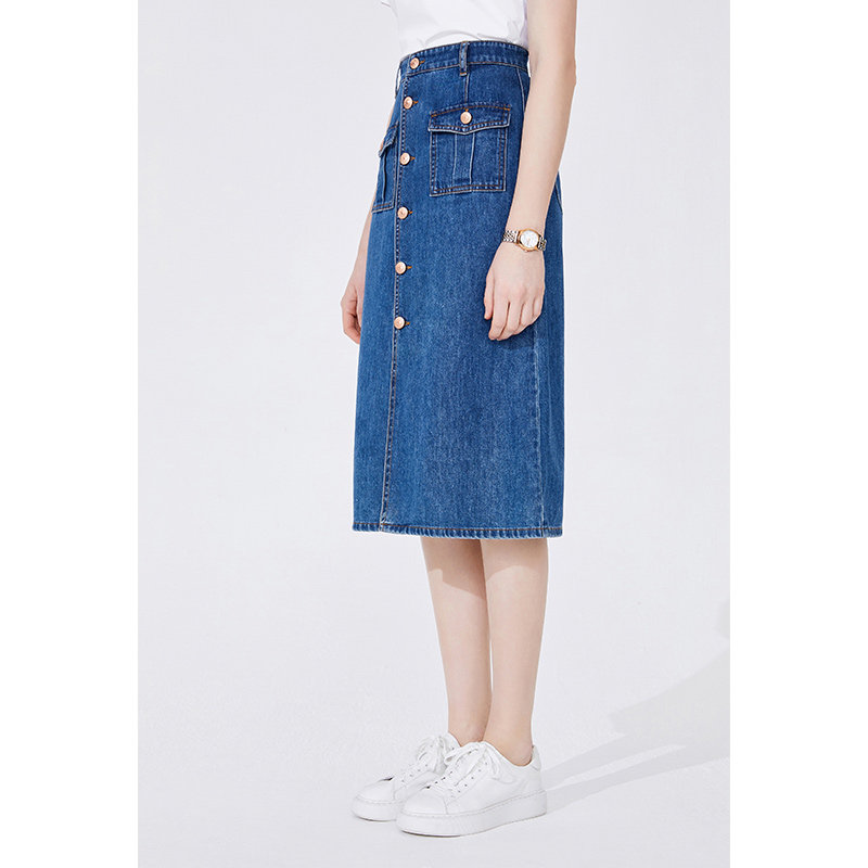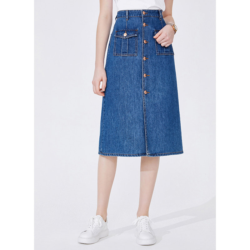 Navigare意大利小帆船中长款半身裙子蓝色设计感牛仔裙休闲A字裙