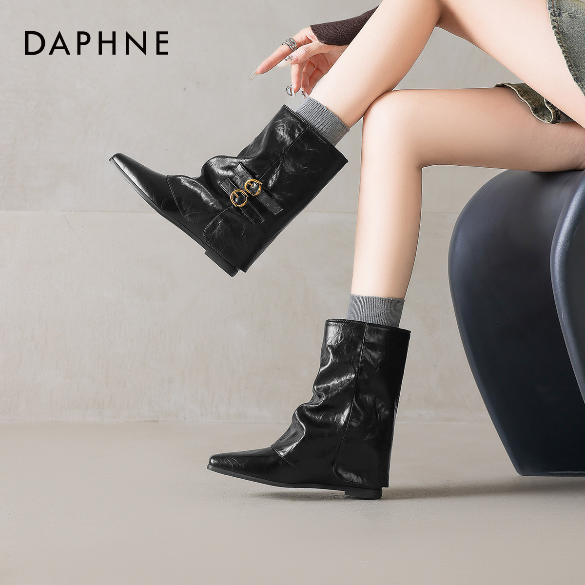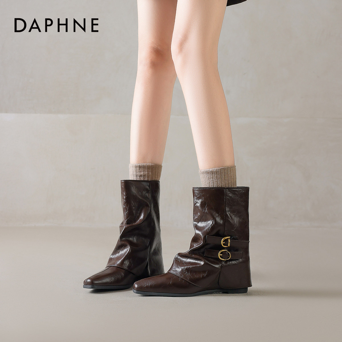 达芙妮棕色尖头裤管靴小短靴2026新款女款秋冬季加绒女靴子巨好看