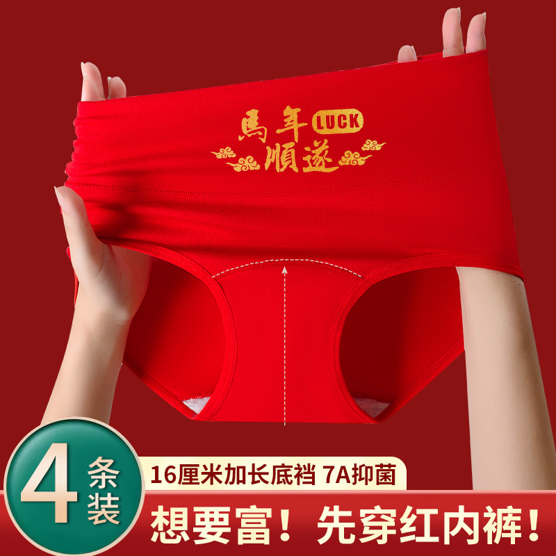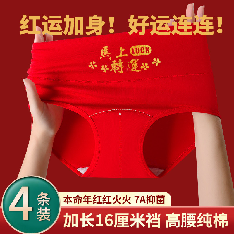 本命年大红高腰纯棉内裤女加长裆抗菌收腹提臀女士三角裤马年内穿