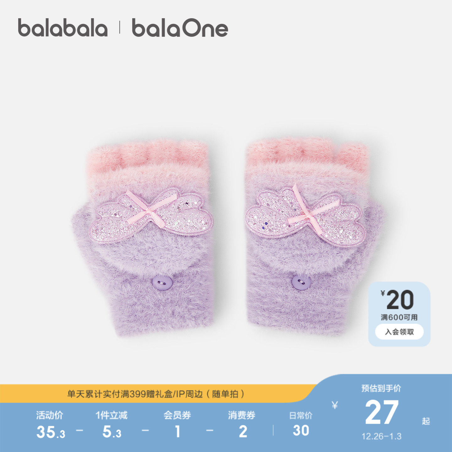 【balaOne】巴拉巴拉儿童手套女童渐变翅膀造型2025新款柔软舒适