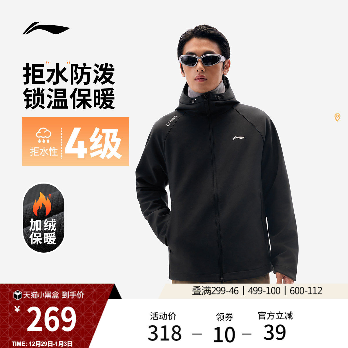 李宁软壳外套男冬季新款跑步夹克上衣保暖户外冲锋加绒厚运动风衣