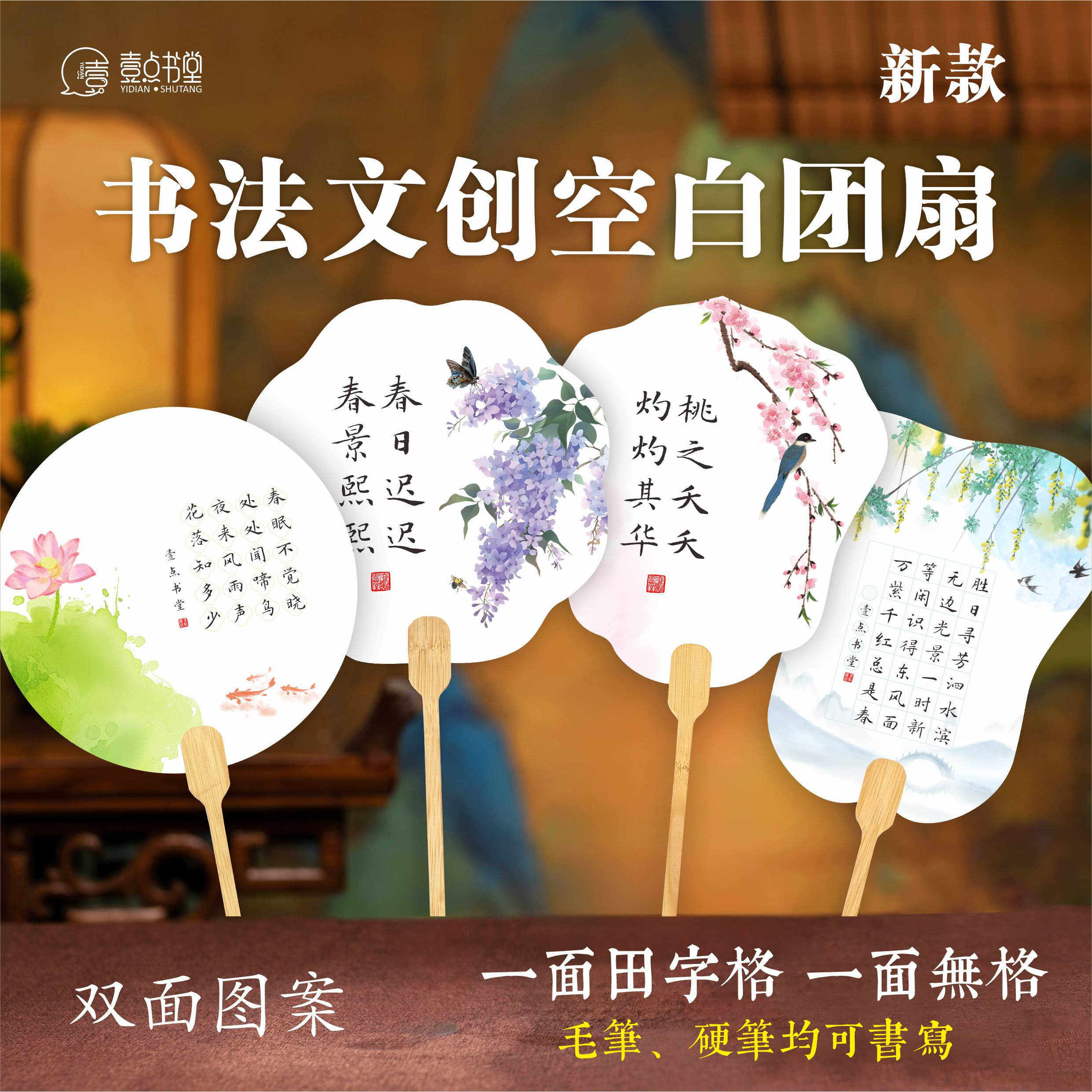 壹点书堂新款书法文创团扇田字格加厚拍照古风创作硬笔毛笔扇子