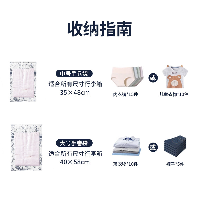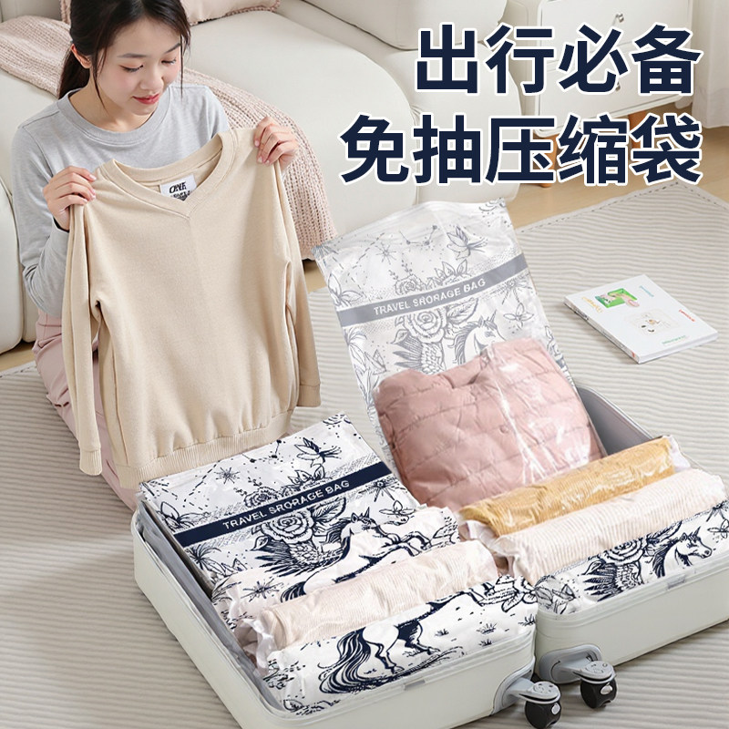 免抽气真空压缩袋衣物收纳袋便携式手卷装旅行被子放假开学整理