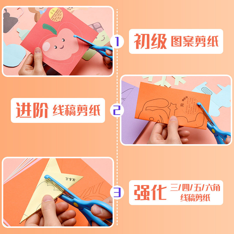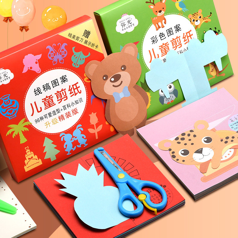 儿童手工剪纸幼儿园diy制作材料小学生初级简单益智3岁6岁宝宝图案底稿套装剪纸书中国风红纸窗花剪纸专用纸