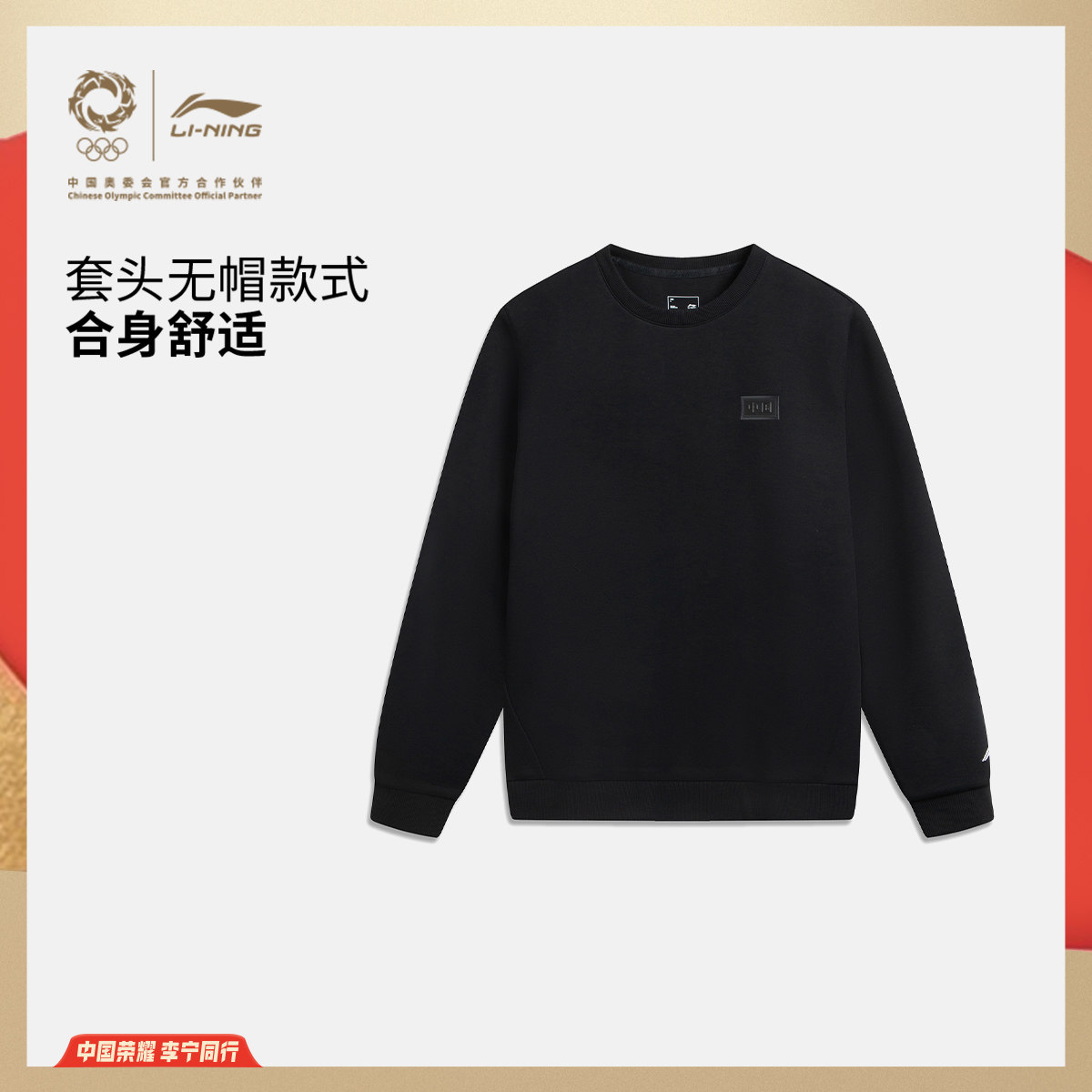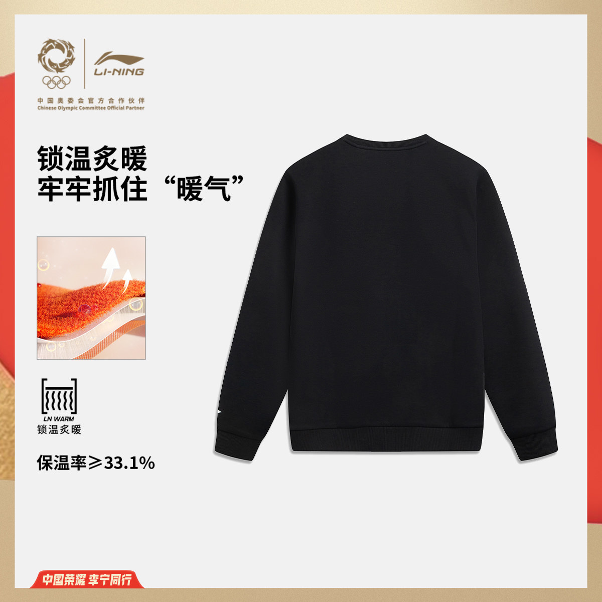 李宁荣耀系列航天动态保暖卫衣男官方新款圆领上衣冬季针织运动服