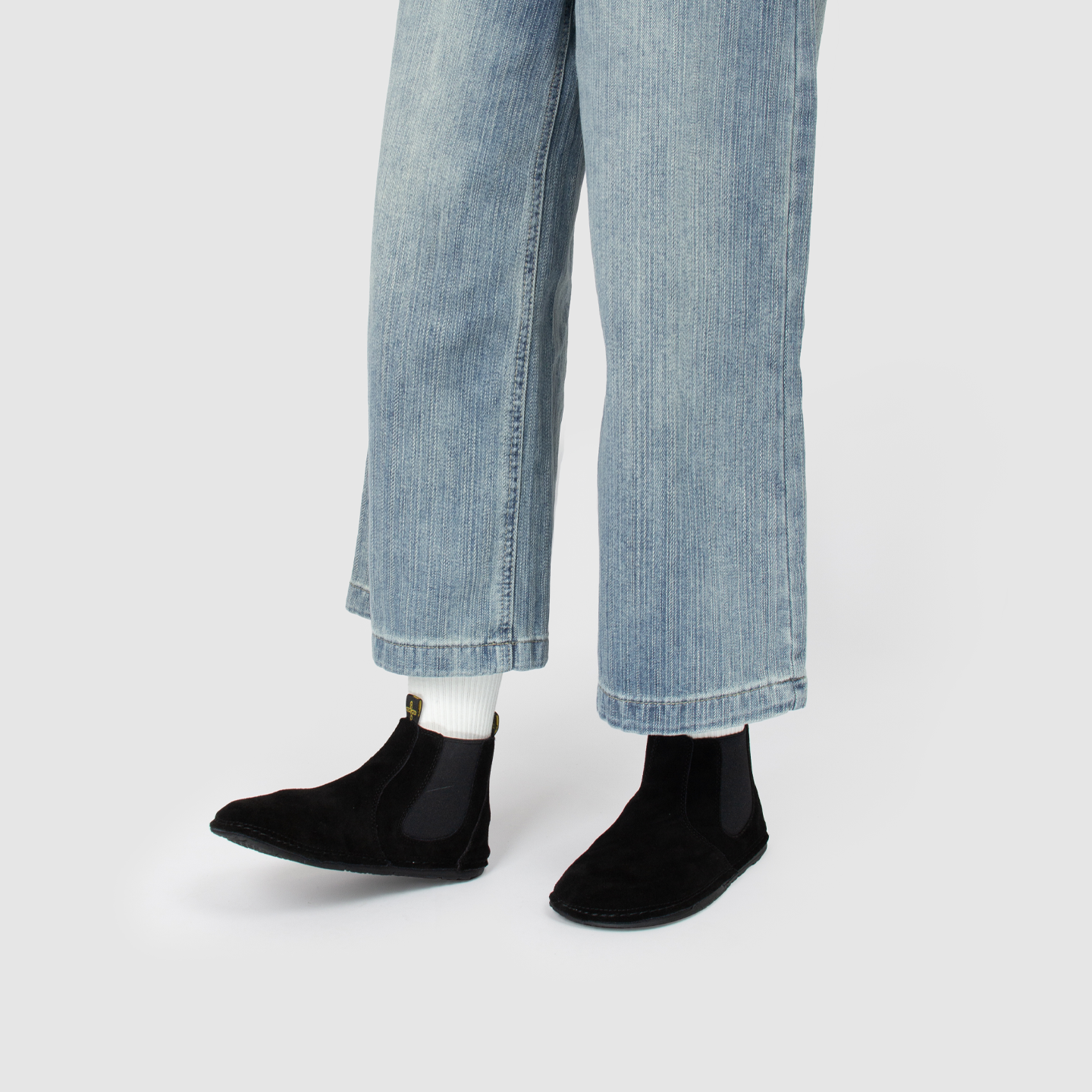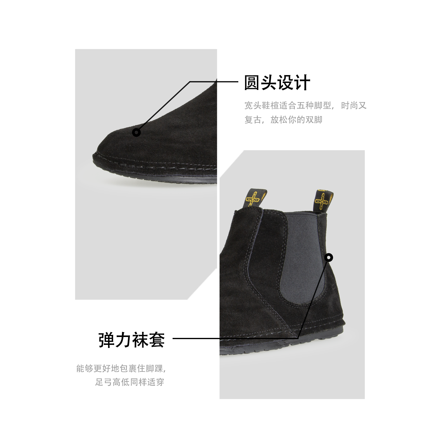 黑色麂皮切尔西靴,弹力拼接好穿脱