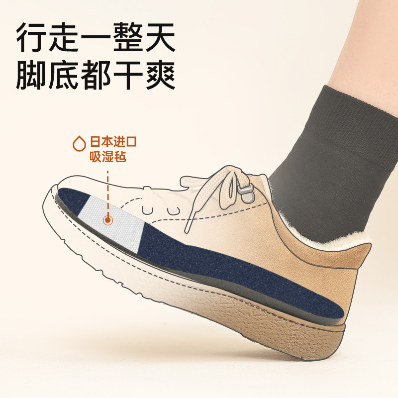 Pansy盼喜日本女鞋加宽加绒保暖羊毛轻便舒适防滑低帮冬季鞋子女
