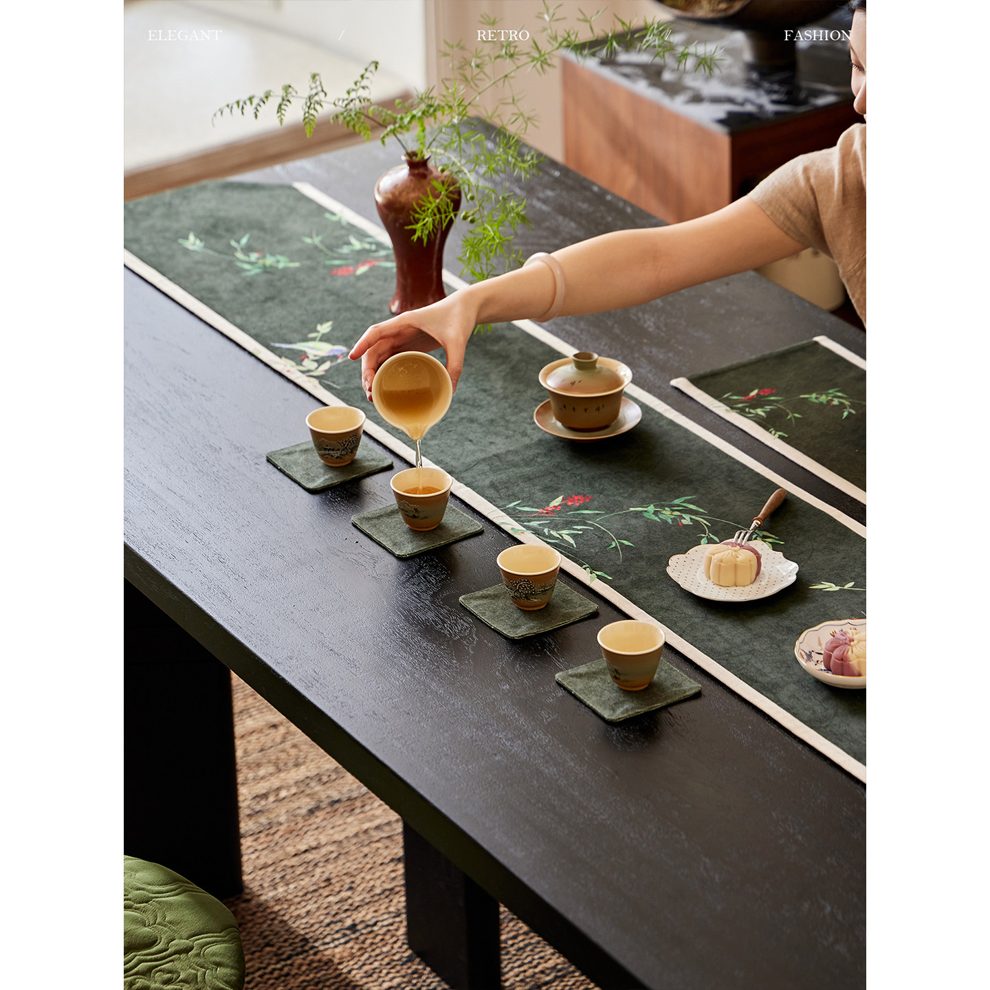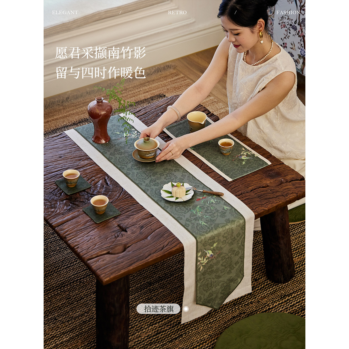 新中式氛围感防水茶席台长桌桌旗轻奢高端