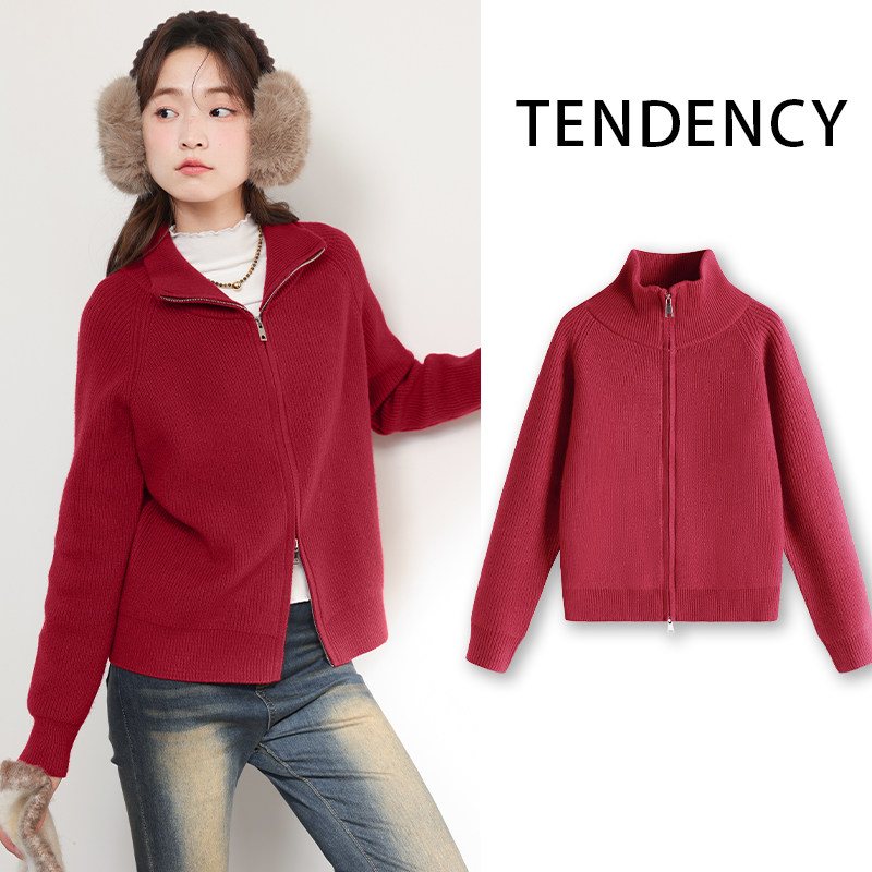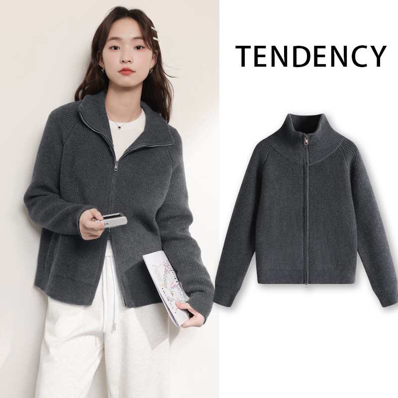 JR真维斯毛衣外套女秋冬季百搭保暖立领开衫保暖气质小个子衣服