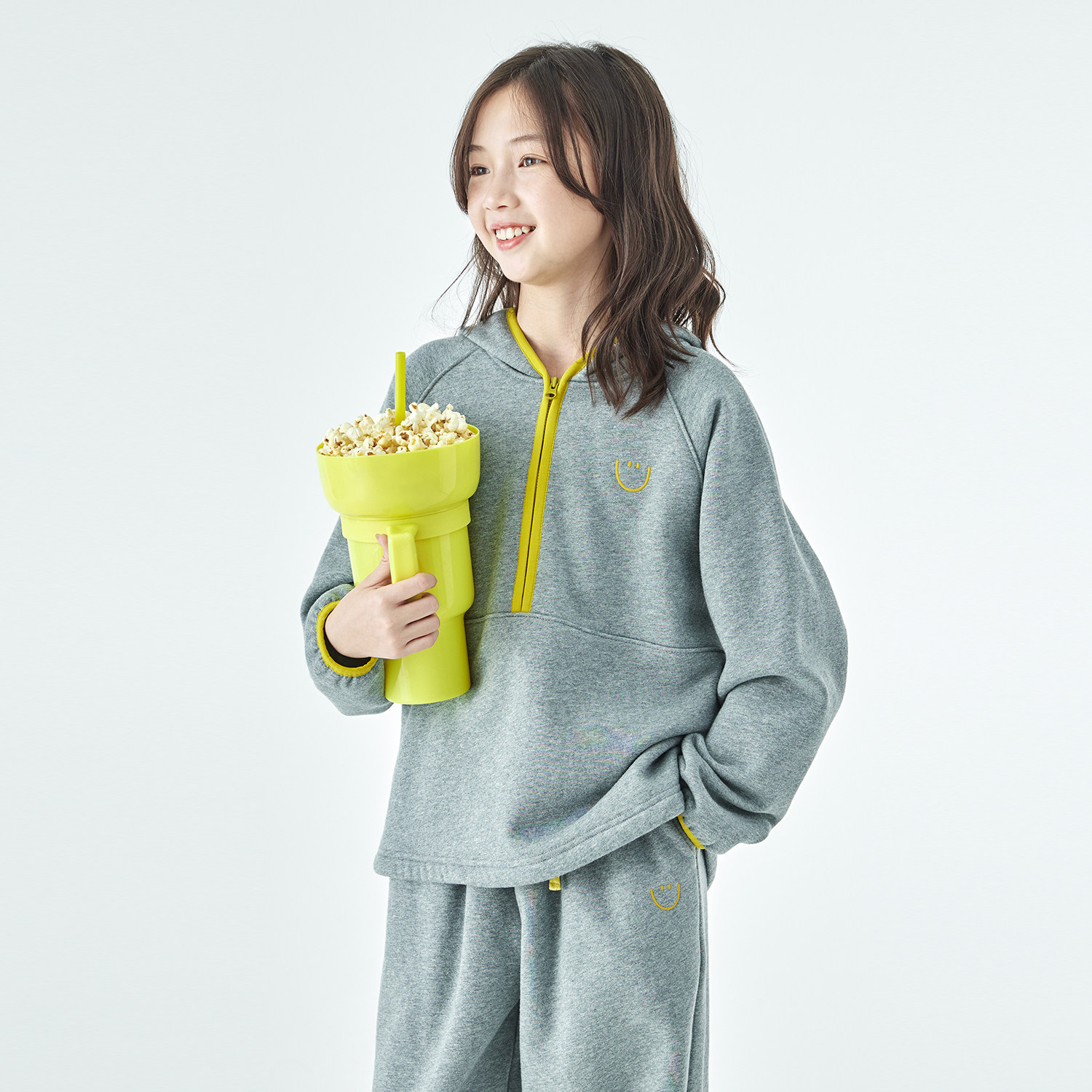 棵初2025年秋冬季新款中大女童加绒卫衣卫裤套装抗静电恒温亲子装