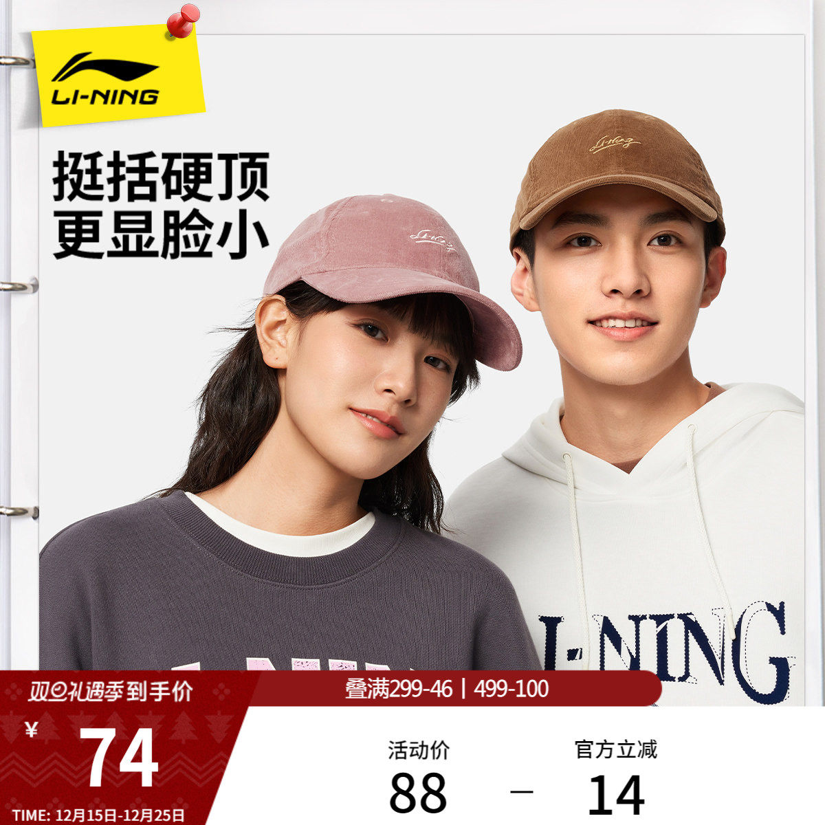 李宁棒球帽男女2026新款官方正品大头围美式硬顶宽帽檐运动帽子