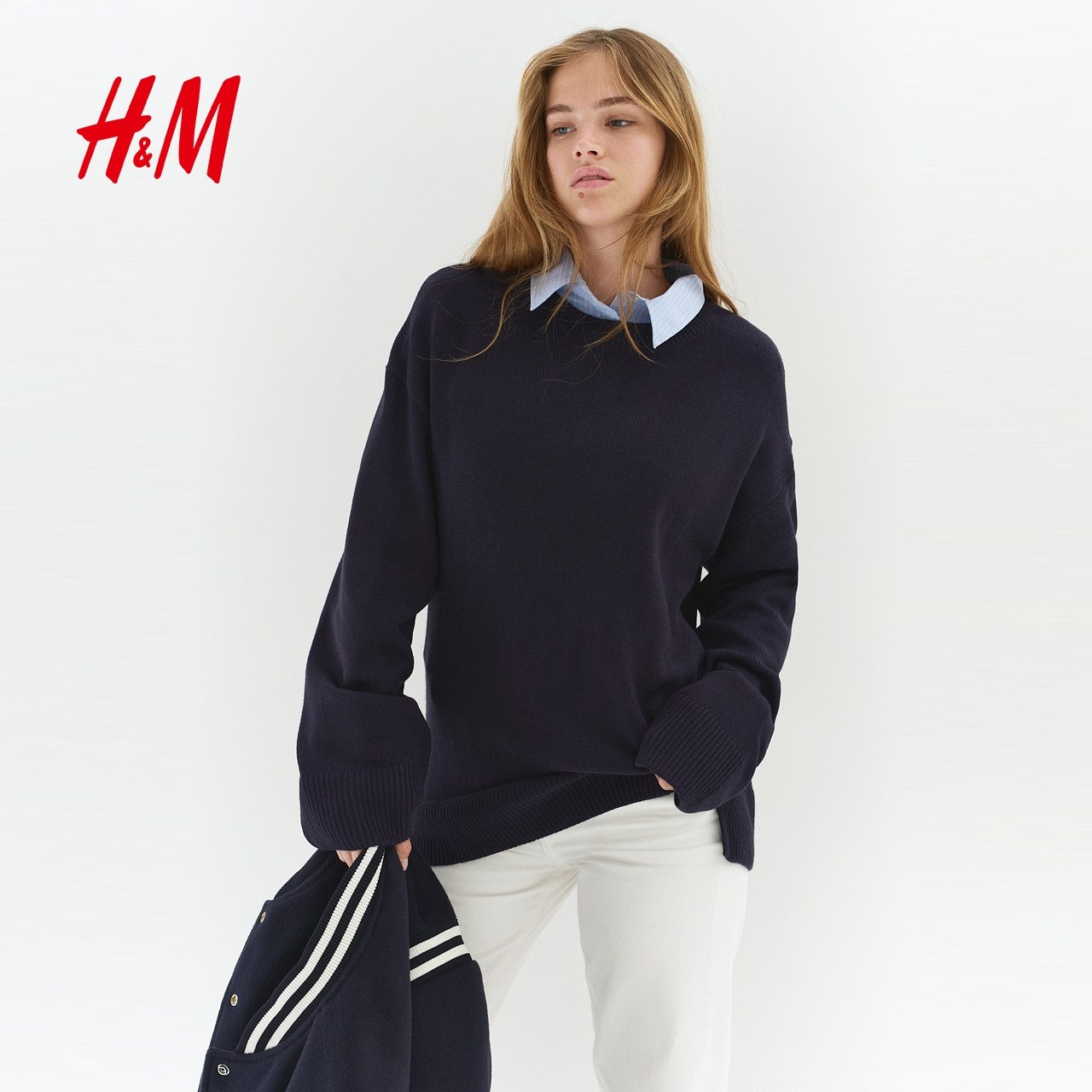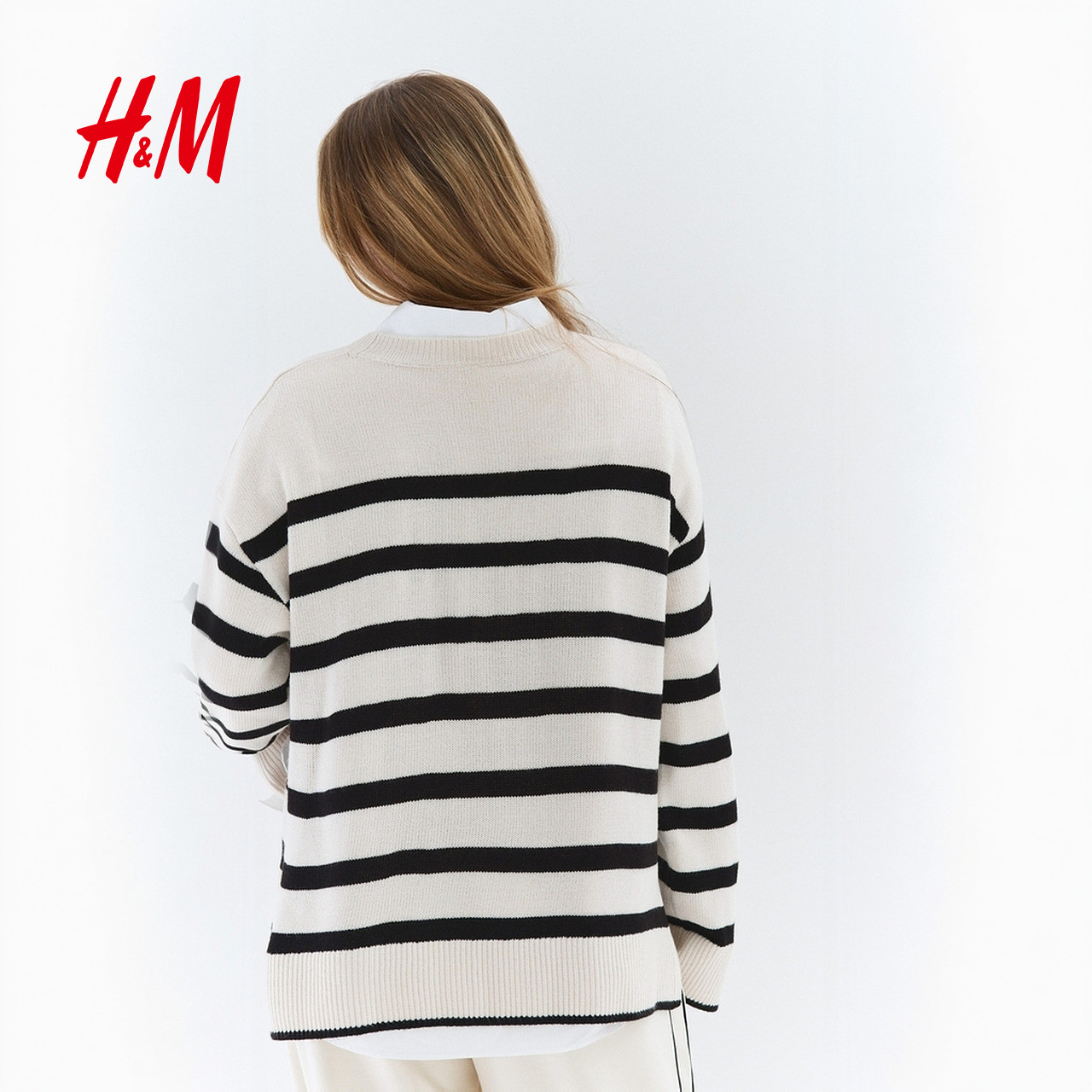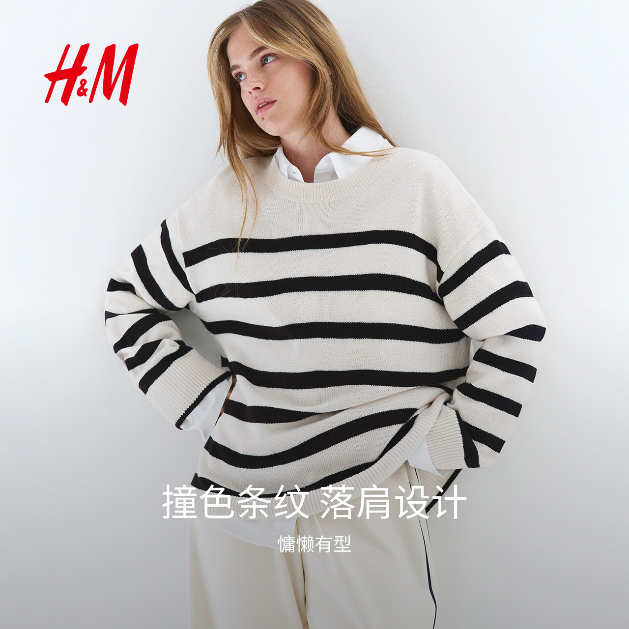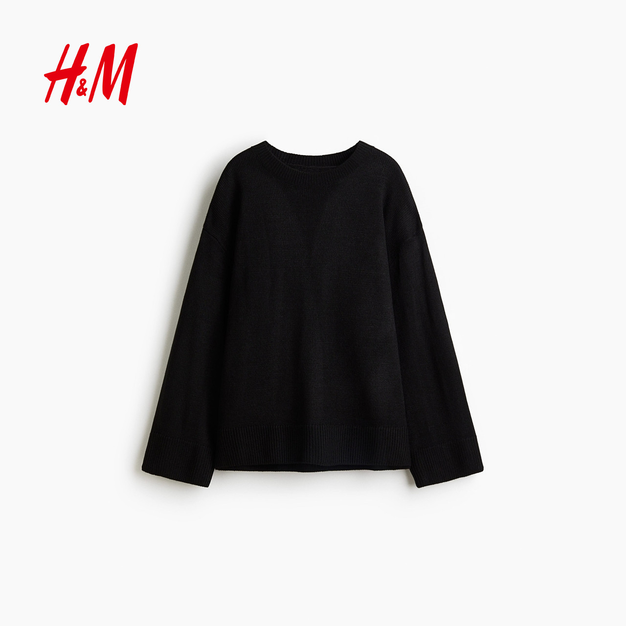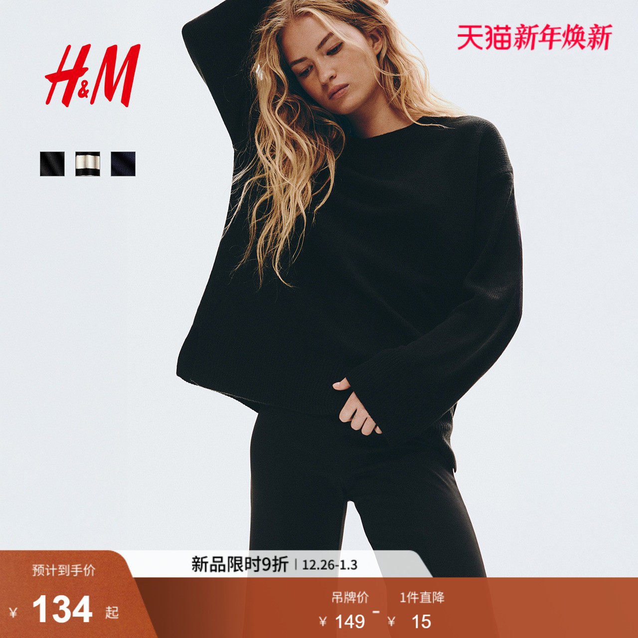 HM女装毛针织衫2025新款柔软舒适简约罗纹圆领内搭打底衫1289649