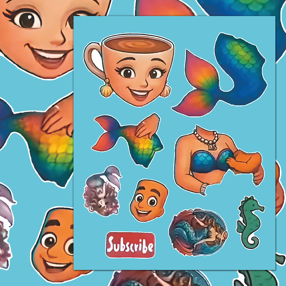 超大张】山海经趣味人鱼系列换装贴纸儿童益智创意diy手工贴画