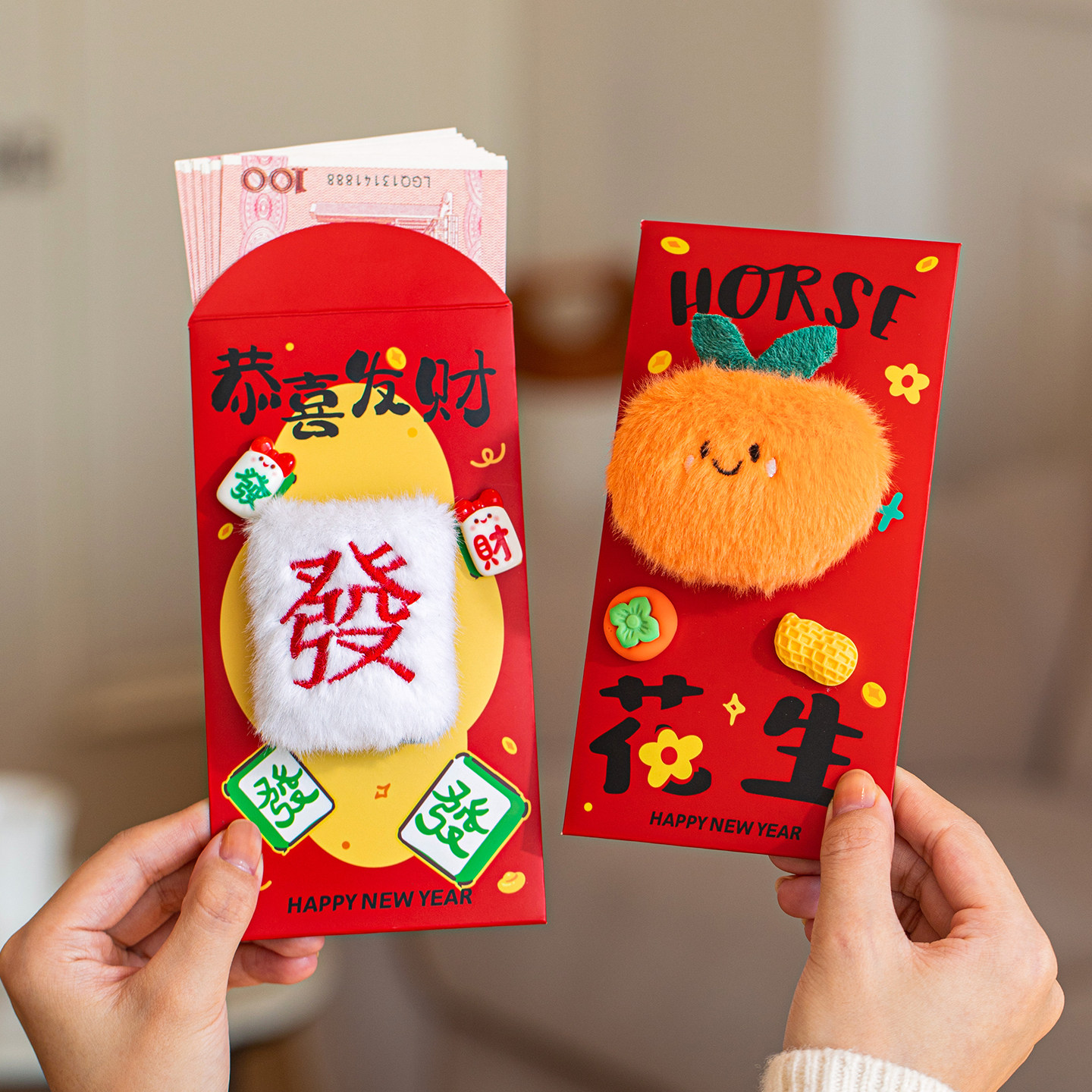 马年毛绒立体红包利是封2026新款新年红包儿童过年摆件小孩红包
