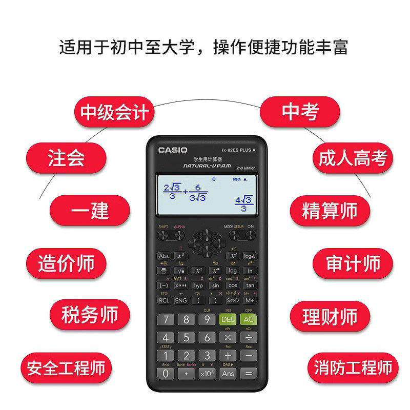 Casio/卡西欧FX-82ES 函数科学计算器考试适用初高中考试学生用大