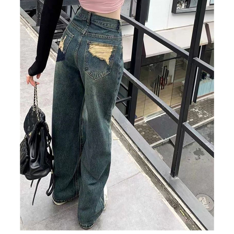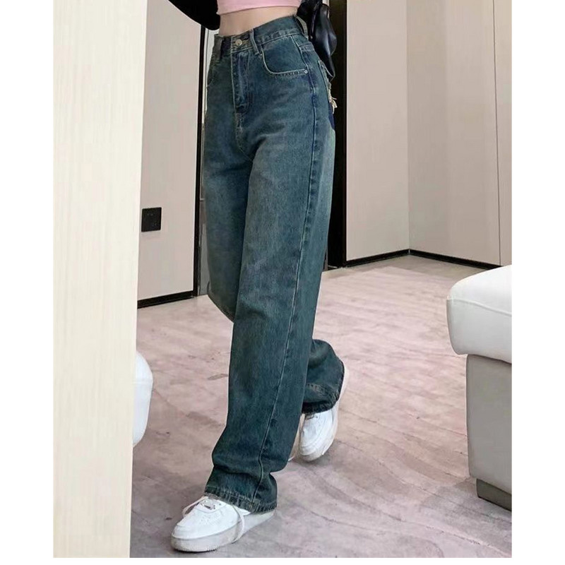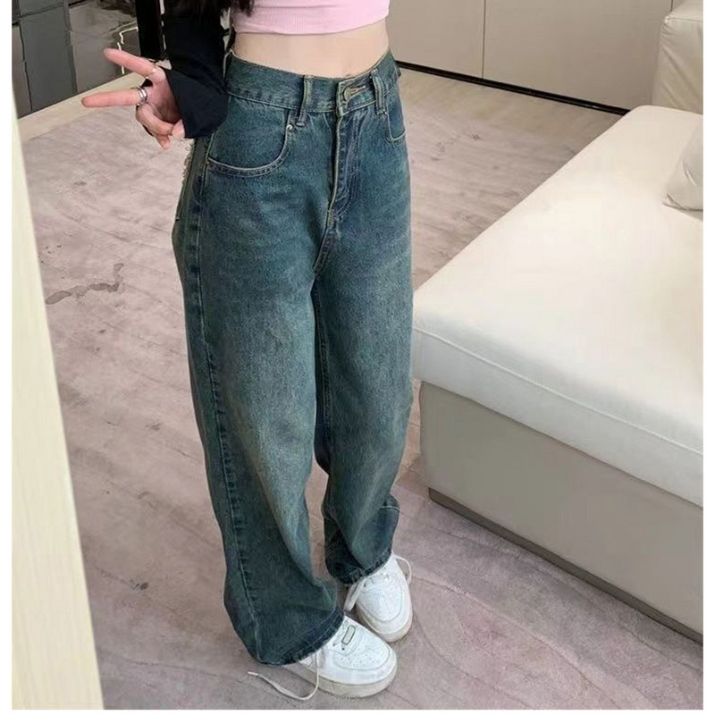 艾恩晟 2025早春美式宽松垂感牛仔阔腿裤深蓝色系慵懒风ins博主风