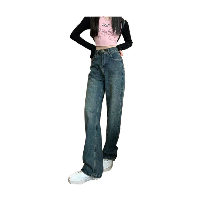 四面弹丹宁色牛仔阔腿裤25年新款宽松显瘦牛仔长裤89173
