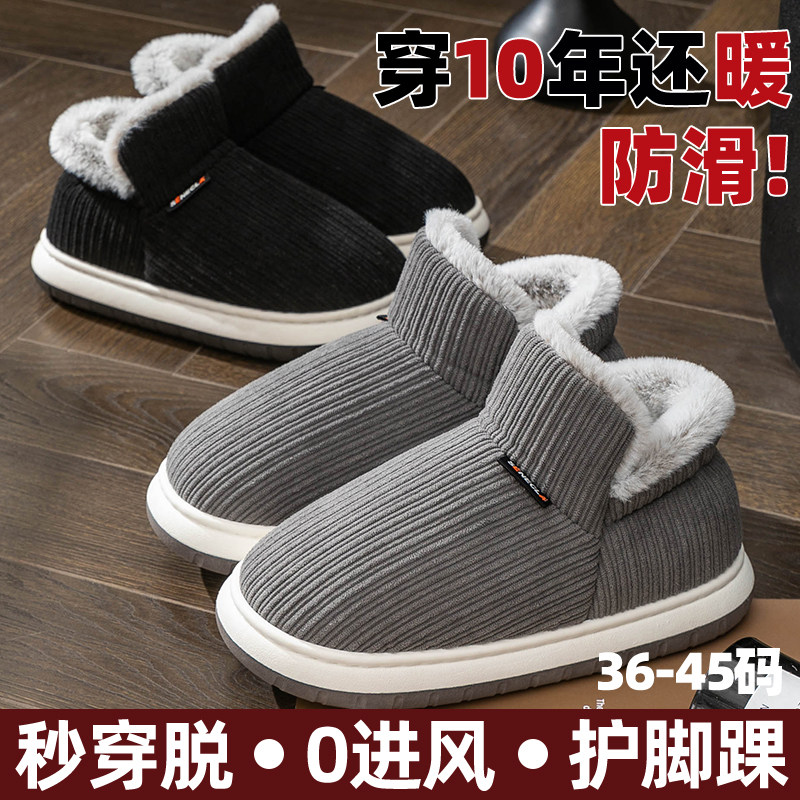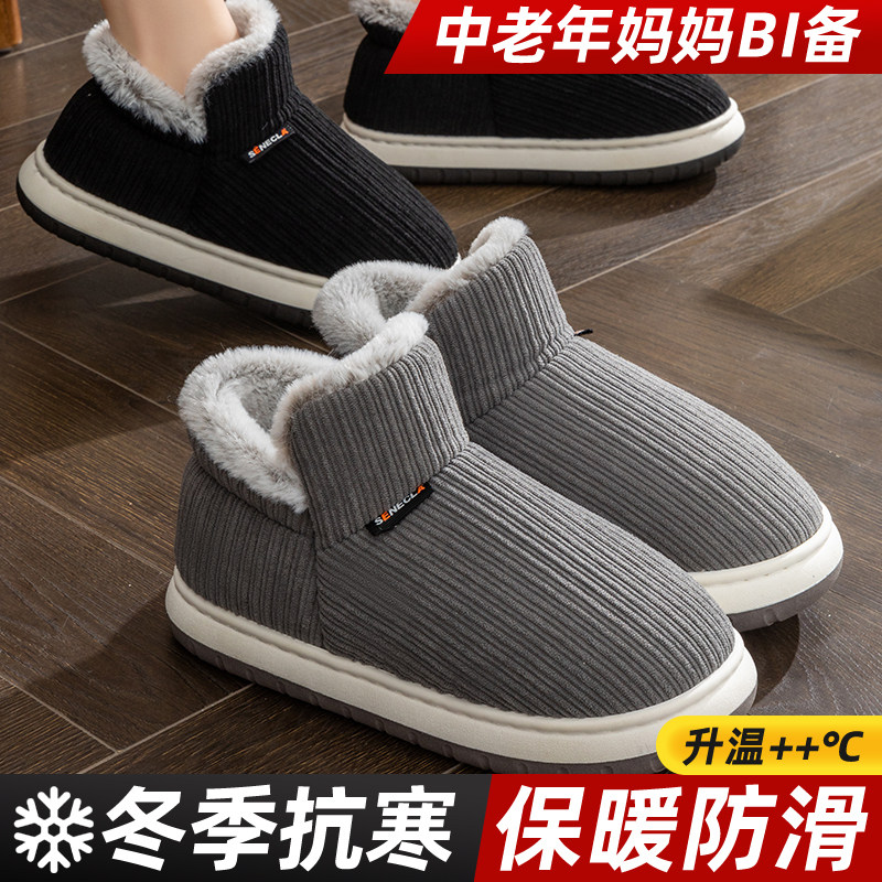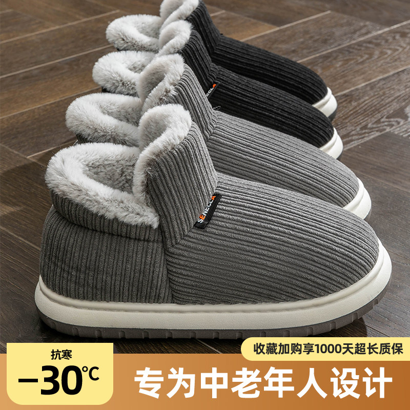 中老年棉拖鞋男款棉鞋女士冬季包跟防滑加绒保暖老年人雪地高帮