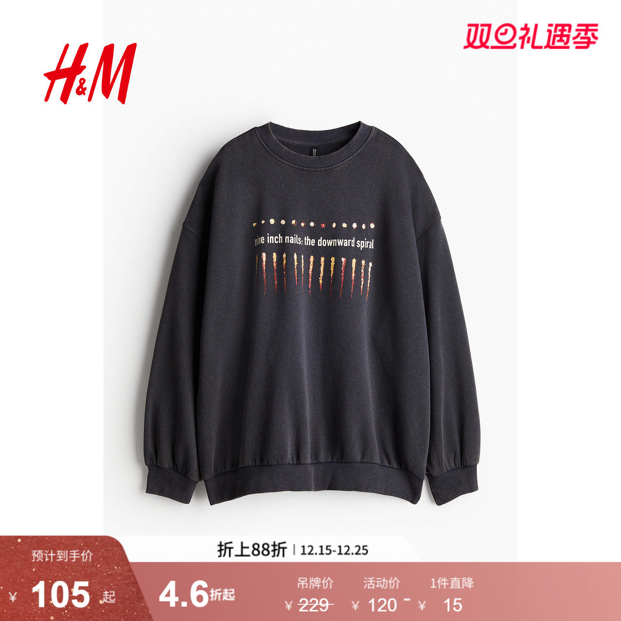 HM女装卫衣潮流时尚保暖宽松大廓形印花长袖美式打底衫1227731