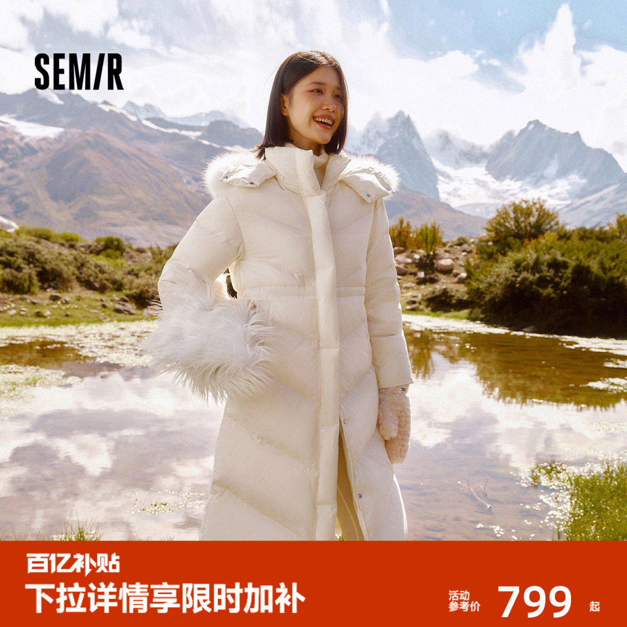 鹅绒|森马羽绒服女长款可脱卸狐狸毛毛领连帽2025冬防水发热冬装