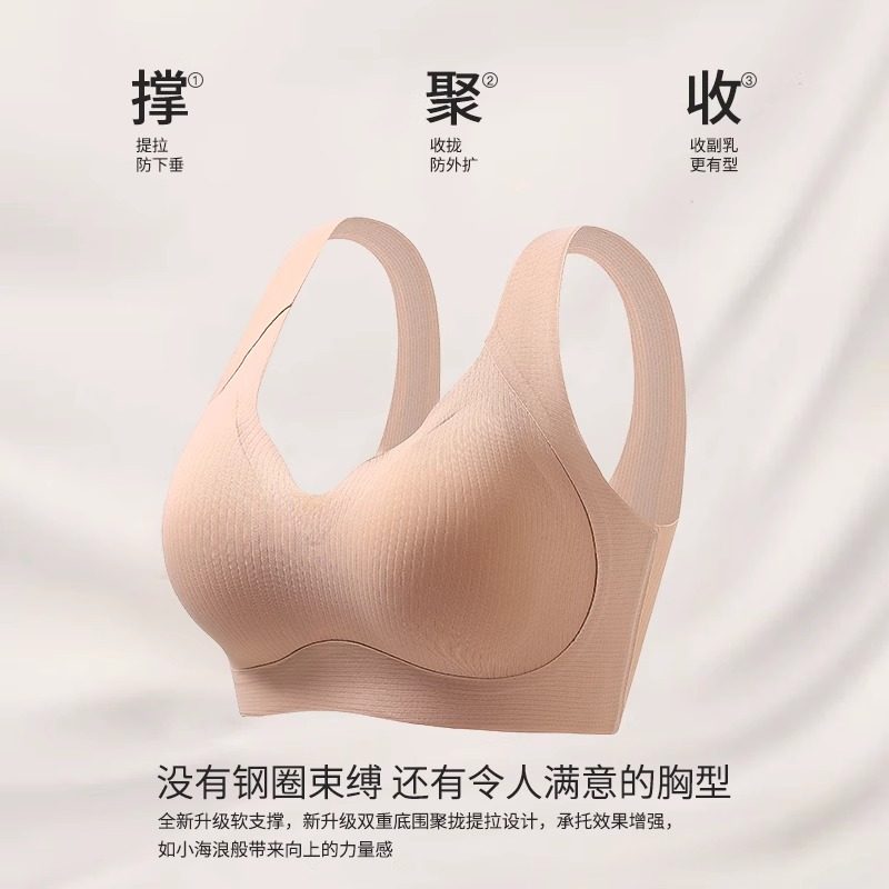 润微提拉女王内衣女大胸显小无痕大码调整防下垂收副乳粉底液文胸