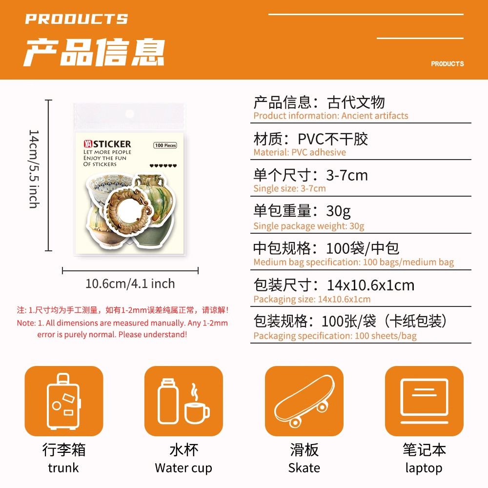 412张中国古代古董文物贴纸鉴赏古董DIY装饰桌面水杯贴画防水免裁