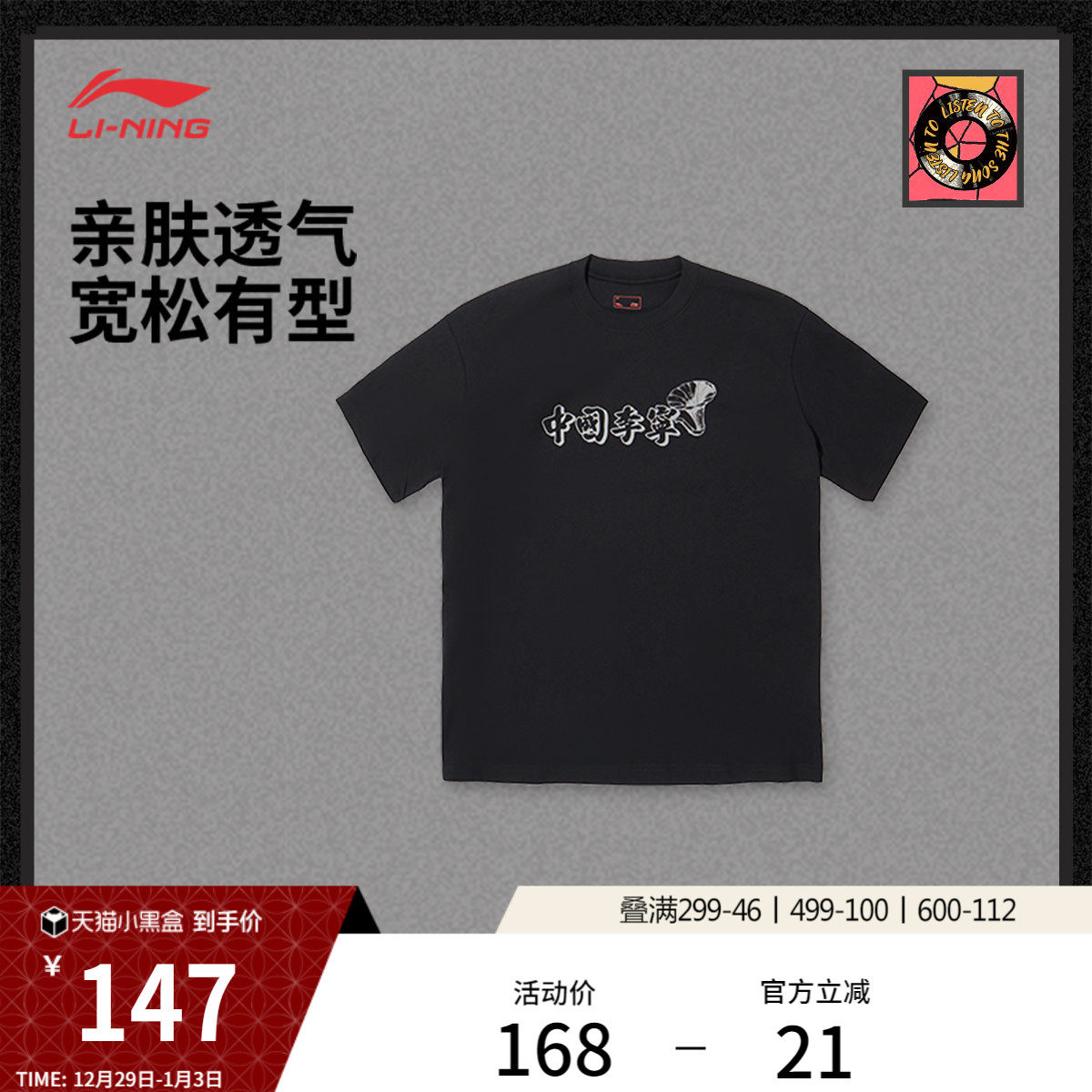 中国李宁T恤男士女士官方新款情侣上衣夏季休闲运动衣宽松运动服