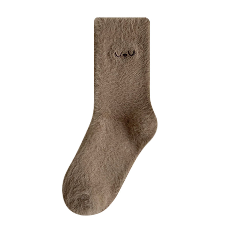 水貂绒袜子女秋冬加绒加厚保暖中筒袜居家睡眠地板月子袜毛绒长袜