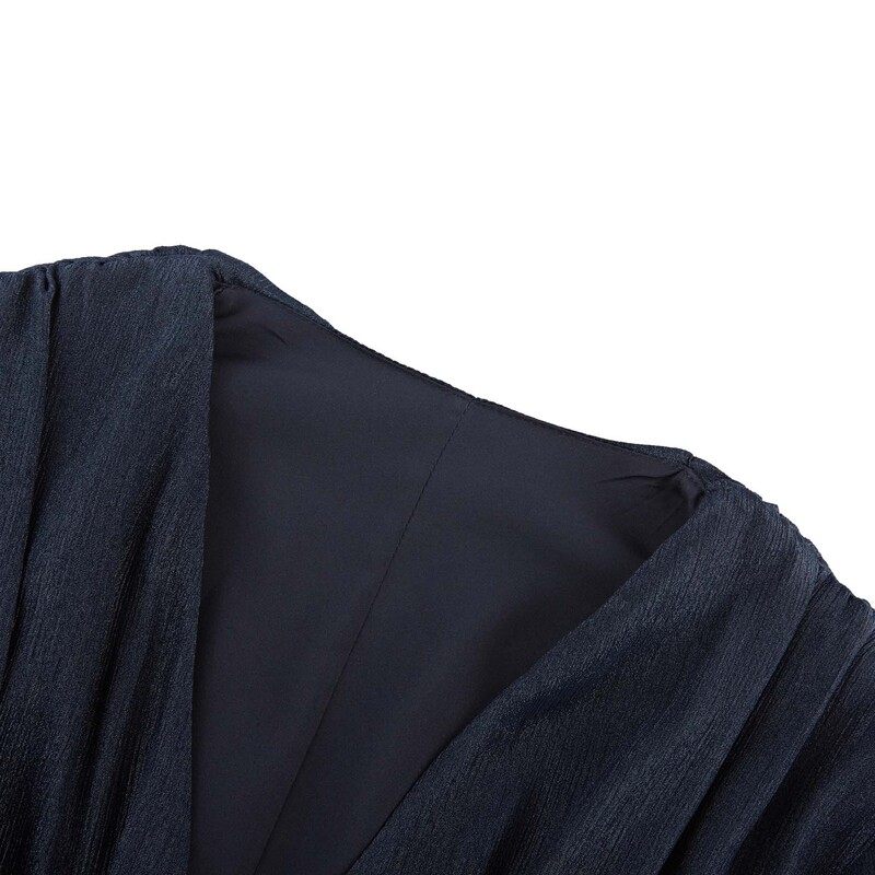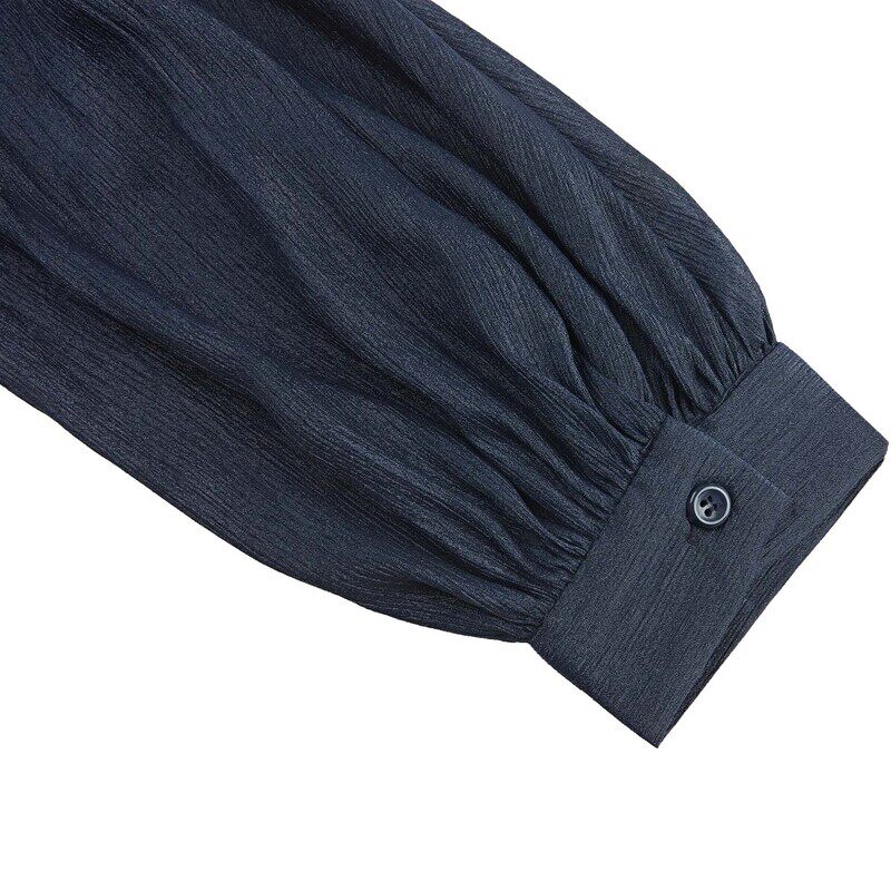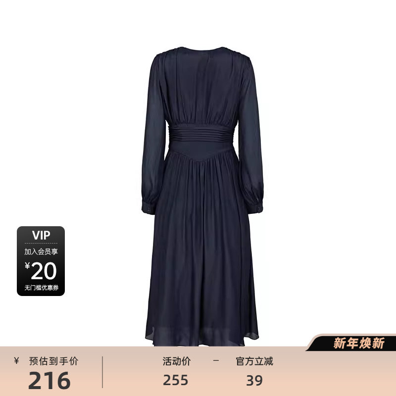 sdeer圣迪奥女装秋V领压褶垂坠雪纺长袖连衣裙S24181210