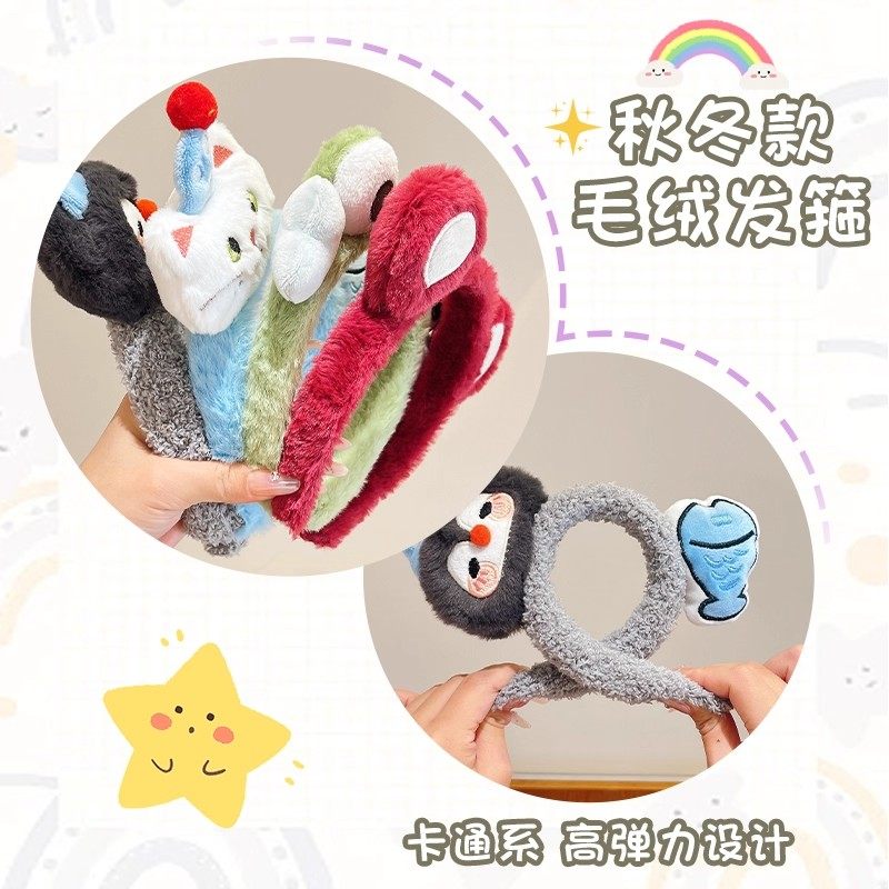 可爱卡通毛绒发箍男2025新款秋冬洗脸专用头箍防滑不掉压发卡子女