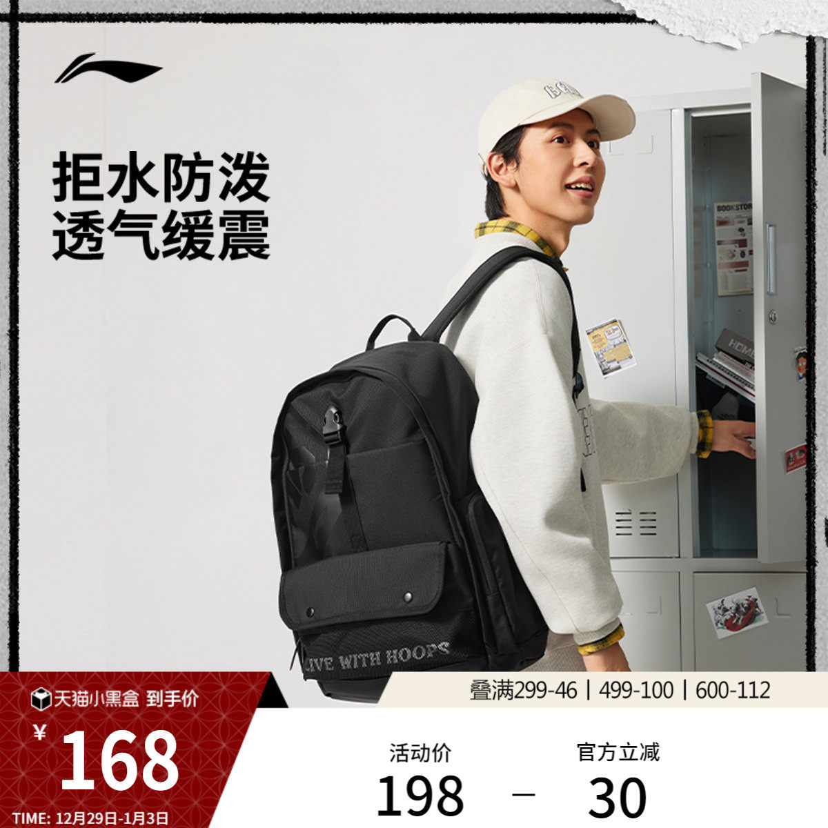 李宁反伍双肩包男女2026新款防泼水旅行背包高颜值学生书包运动包