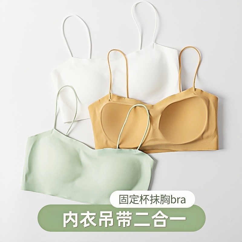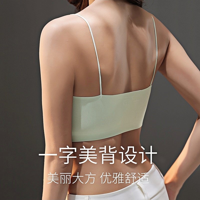 无痕美背抹胸内衣女小胸聚拢可外漏细肩带一体固定杯背心式文胸罩