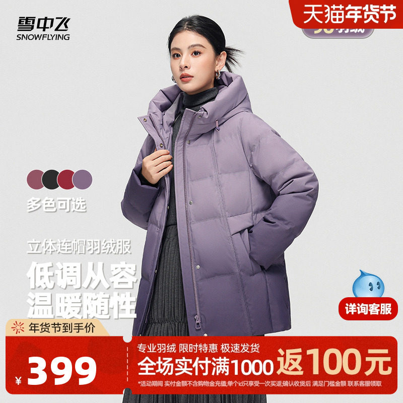 雪中飞2025冬新款暗花羽绒服女款优雅气质妈妈装连帽保暖中老年