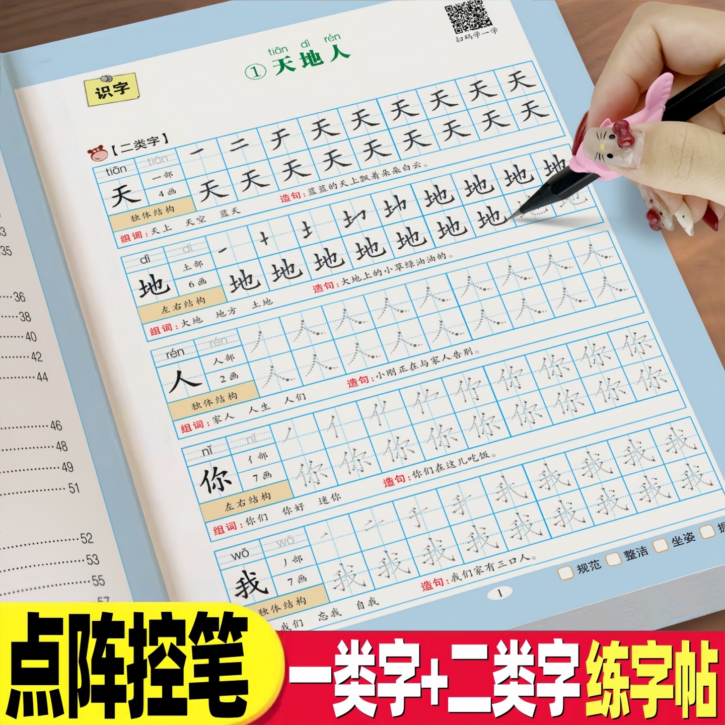 2025新小学语文课本同步练习点阵控笔同步练字帖类字生字描红本一年级上册幼小衔接小学生看拼音写词语L语数英人教科学新版读书