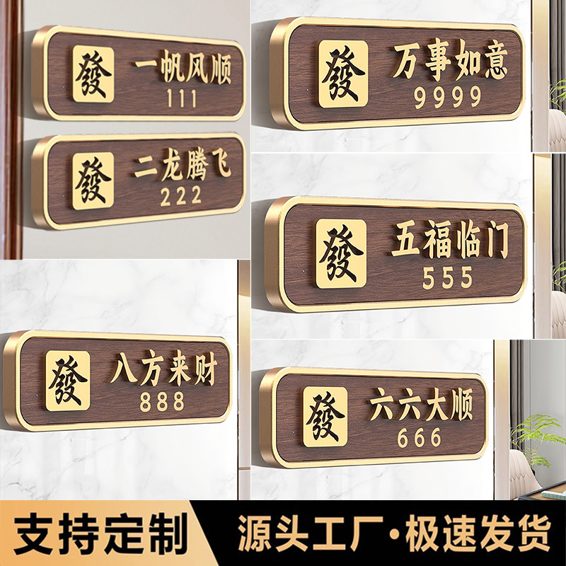 亚克力创意新中式包厢门牌麻将馆茶楼餐厅饭店定制棋牌室酒店复古包间包房茶室VIP门牌号数字房间号门牌定做