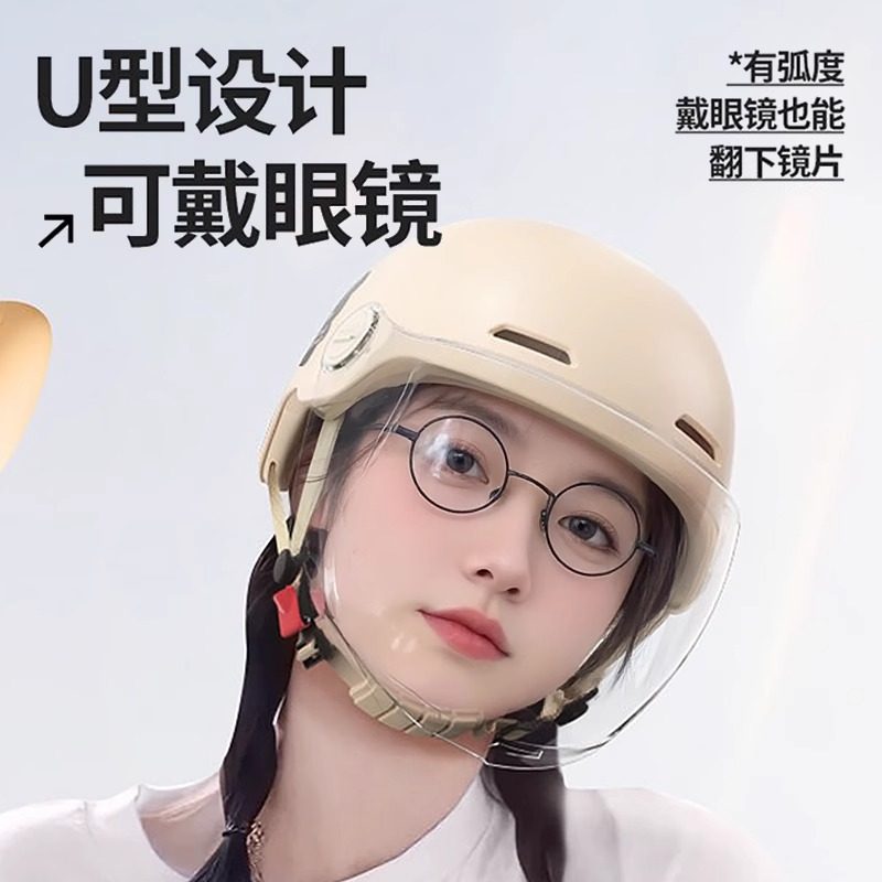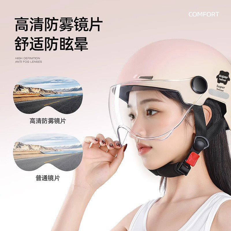 新国标3c认证电动车头盔电瓶摩托车安全帽夏季半盔四季通用镜片