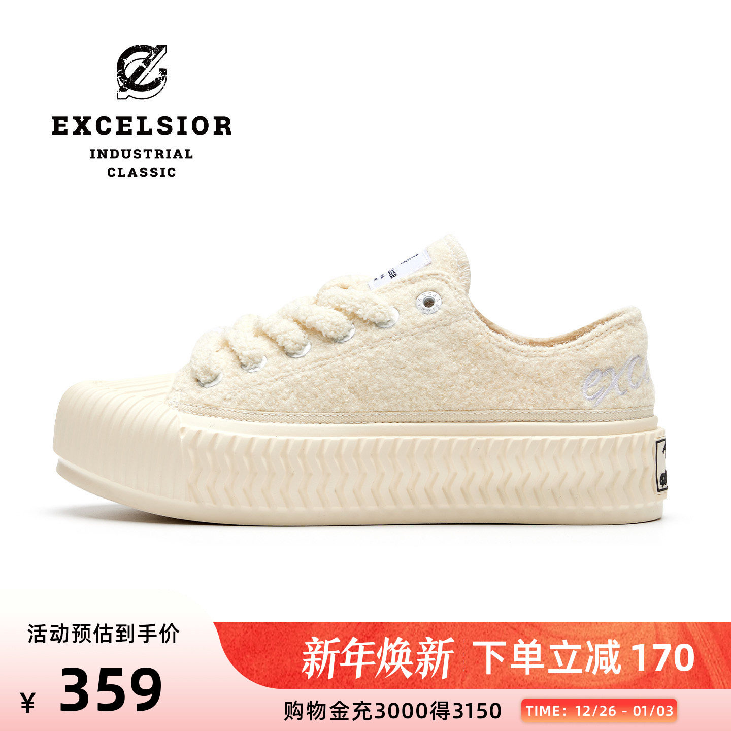 excelsior饼干鞋 冬季女鞋加棉板鞋男低帮增高休闲鞋厚底帆布鞋女